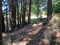 Empty lot in Santa Cruz County off of Hecker Pass, Highway 152. Nice views over the valley. Redwood trees and an open field on a gentle slope.