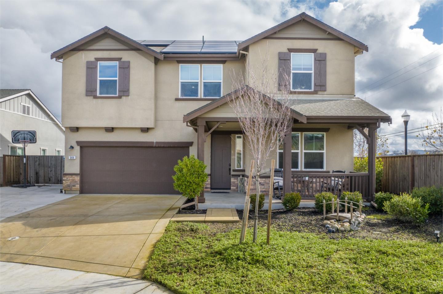 Sunrises cast their golden glow against a verdant mountainside that forms the backdrop of this two-story San Juan Bautista home on a peaceful cul-de-sac. Enjoy pastoral views from multiple rooms, including four upstairs bedrooms and one main-level guest room. Each second-story bedroom feels totally private, flowing from a bright and spacious central hub that can serve as a media room, an at-home study zone, a library, an informal hangout, or anything else out of your wildest imagination. Back downstairs, flip on the gas fireplace in the open concept living room that connects seamlessly to a generous kitchen and dining area. Rejoice in the bounty of cabinetry and storage space, including an impressive walk-in pantry that feels endless. The massive kitchen island doubles as a breakfast bar, and it is ideal for entertaining guests, who can grab drinks and appetizers on their way to the living room or fenced backyard. Featuring a stunning in-ground pool and spa, a beautiful fire pit with a gorgeous built-in stone bench, and artificial turf, this extensive outdoor space will be the envy of your entire group. Sink into the warmth of the water, champagne glass in hand, and toast the good life in San Juan Bautista, home of the famous Mission, scenic trails, and sun-dappled wineries.