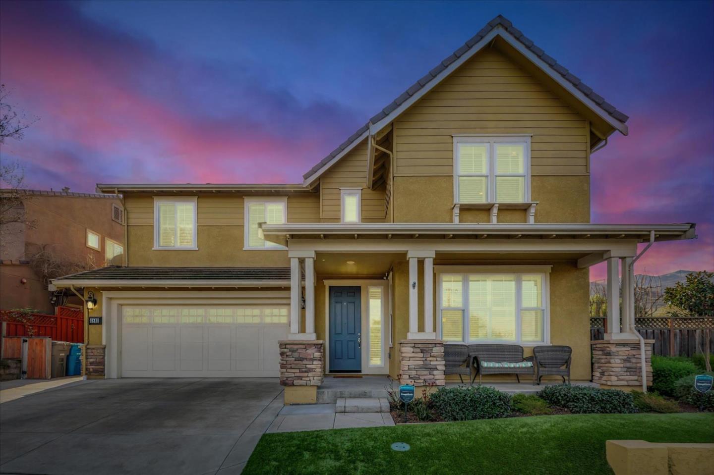 Welcome to Mesa Ridge!This beautiful home boasts clean, sharp lines & is impeccably maintained! This spacious 4BR/3.5BA home sits on a large corner lot, located at the base of the oak tree studded foothills in Gilroy. The kitchen has rich dark cabinetry, granite counter tops, and an oversized island, perfect for entertaining! The kitchen also has stainless-steel appliances including a newer built-in refrigerator, double ovens, a built-in microwave, gas cooktop and hood. Adjacent is a butler's pantry with two wine refrigerators and a full wall of pantry cabinets, and granite countertops. The kitchen and family room are open concept and very large to accommodate any group you may host. A formal dining room and living room round out the downstairs living space. Upstairs is a spacious loft/flex space with many possibilities to fit your needs. The primary suite has sliding barn style sliding double doors that lead to a bathroom with his and hers closets with built-in organization. Also included is a large soaking, jetted tub and a separate shower. The upstairs is completed with 3 more bedrooms. Located on a large corner lot in a quiet neighborhood. The backyard has a covered patio, a great space for entertaining! This home also includes Owned Solar!