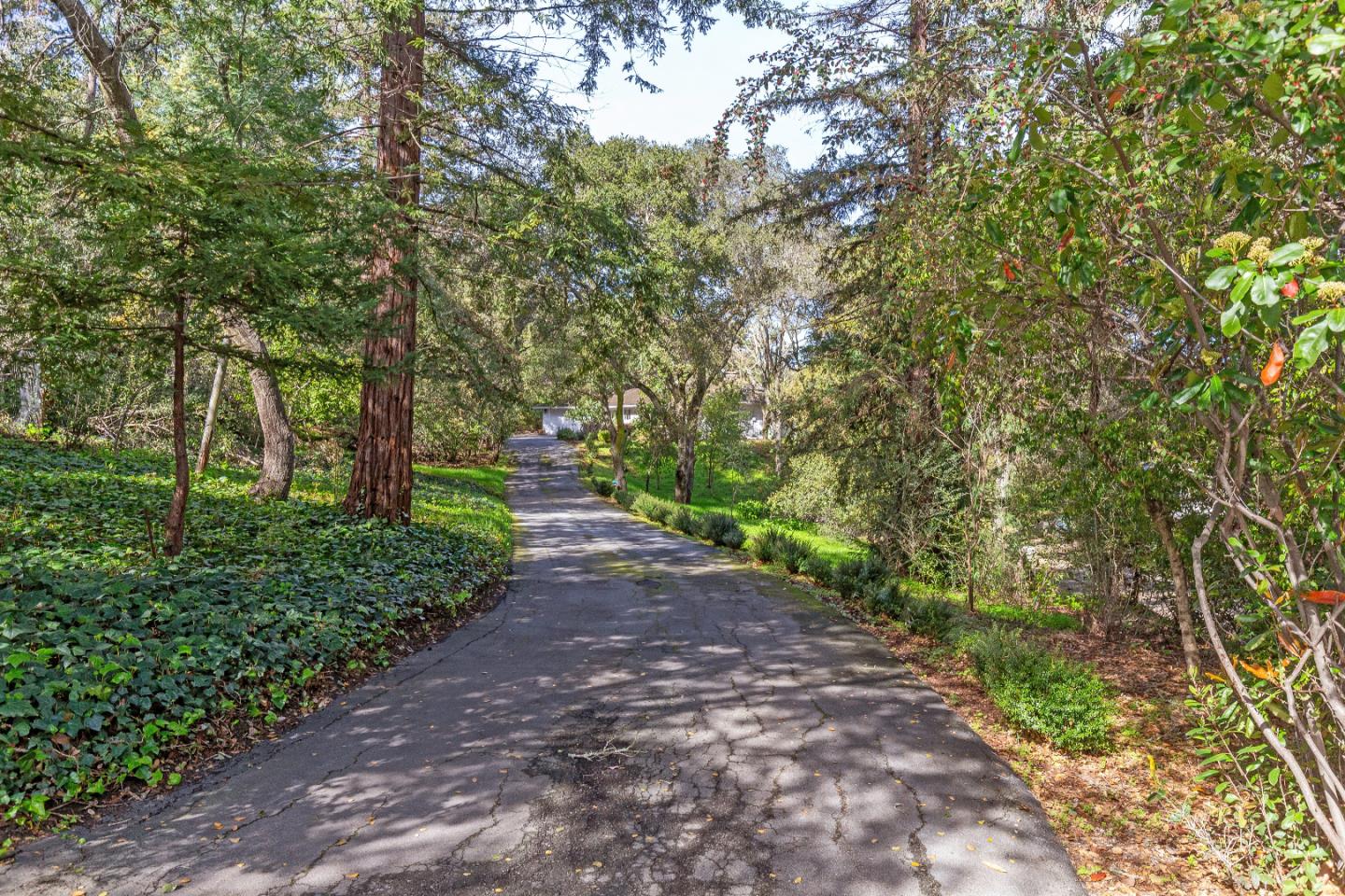 Unusual for Woodside Heights, this exquisite home sits perfectly sited on a mostly flat, and breath-taking, acre. Located in a secluded, yet conveniently located, cul de sac, you will enjoy a rural privacy, surrounded by nature, yet just two minutes from 280 and Woodside Town Center. Gorgeous wood floors and tasteful crown molding run throughout. The living & dining room shows off with vaulted ceilings, a wood-burning fireplace, and built-in bookshelves. Floor-to-ceiling windows look out on an expanse of trees and level, landscaped grounds. All bedrooms, living room, family room, and dining room have views of, and access to, the patio, gardens, and backyard. The kitchen--spacious and bright--boasts stainless steel appliances, loads of cabinets, plenty of counter work space & an ample breakfast nook. There are separate family & laundry rooms and not one, but two, en suite bedrooms. The capacious primary master bedroom features a cathedral ceiling, an oversized walk-in closet, and luxurious bath. Sumptuous Italian marble and tasteful granite abound. There is even overflow parking for oversized vehicles. Just minutes from hiking, biking, riding trails, Stanford, Sand Hill, Safeway, Starbucks, downtown Menlo Park, and more. Distinguished Los Lomitas schools.