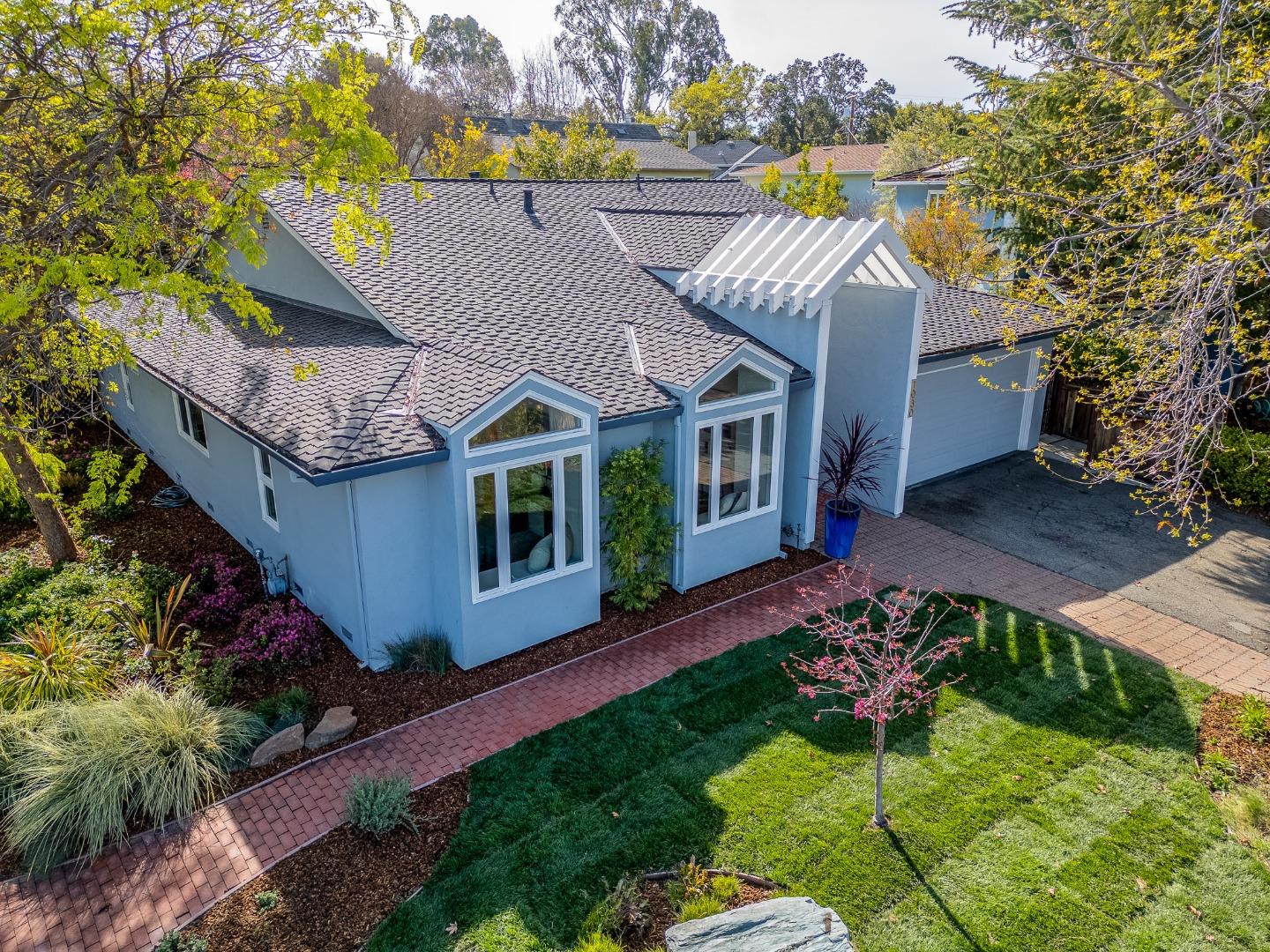 Elegant and beautifully-appointed 1-level contemporary home in the idyllic & desirable Barron Park Neighborhood. One block to distinguished Gunn HS. Home was extensively rebuilt from the studs out. Magnificent landscaping & private indoor-outdoor feel. Gorgeous botanical garden & thoughtful hardscape, including blue stone pathway, decorative sitting wall & brick patio. Impressive, vaulted entry w/an artistic-inspired marble pattern that leads to a handsome living room - marble fireplace, built-ins & architectural elements ideal for art collectors. Solid hardwood flooring. Open-concept kitchen w/premium appliances - Gaggenau cooktop & Viking high-capacity hood. Dining area opens to a lovely outdoor lounge area. Romantic primary suite w/large shower enclosure, closet built-ins & French door overlooking tranquil, private garden. Fantastic community to lead an active lifestyle. Stroll to Cornelis Bol Park, enjoy its popular path, visit the beloved Barron Park Donkeys, and bike to Stanford University & Research Park.