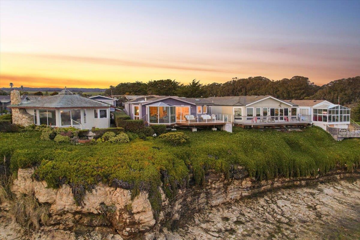 Ocean front views that will ahmaze you. It is set prominently on the ocean bluff offering a breathtaking view of Monterey Bay, this exquisite residence at 2395 Delaware Avenue #170 offers a rare opportunity to embrace coastal living at its finest. Boasting 2 bedrooms, 2 bathrooms and an office with a murphy bed. Open custom kitchen with induction range and subzero fridge and family room allowing for large gatherings, primary bedroom and bath with additional en-suite bedroom with large built in closet cabinetry, laundry closet, mud room, tesla charger, custom deck and the SHOWSTOPPER, glass room for full immersion of the ocean experience. Warm plastered walls and amazing floor plan are like no other home in this community. Custom concrete carport. Enjoy Natural Bridges State park, Westcliff, gorgeous pool, gym, sauna and clubhouse. One owner must be 55+ and obtain park approval for this Vibrant community. Very rare ocean front living on the westside. You must SEA this home!