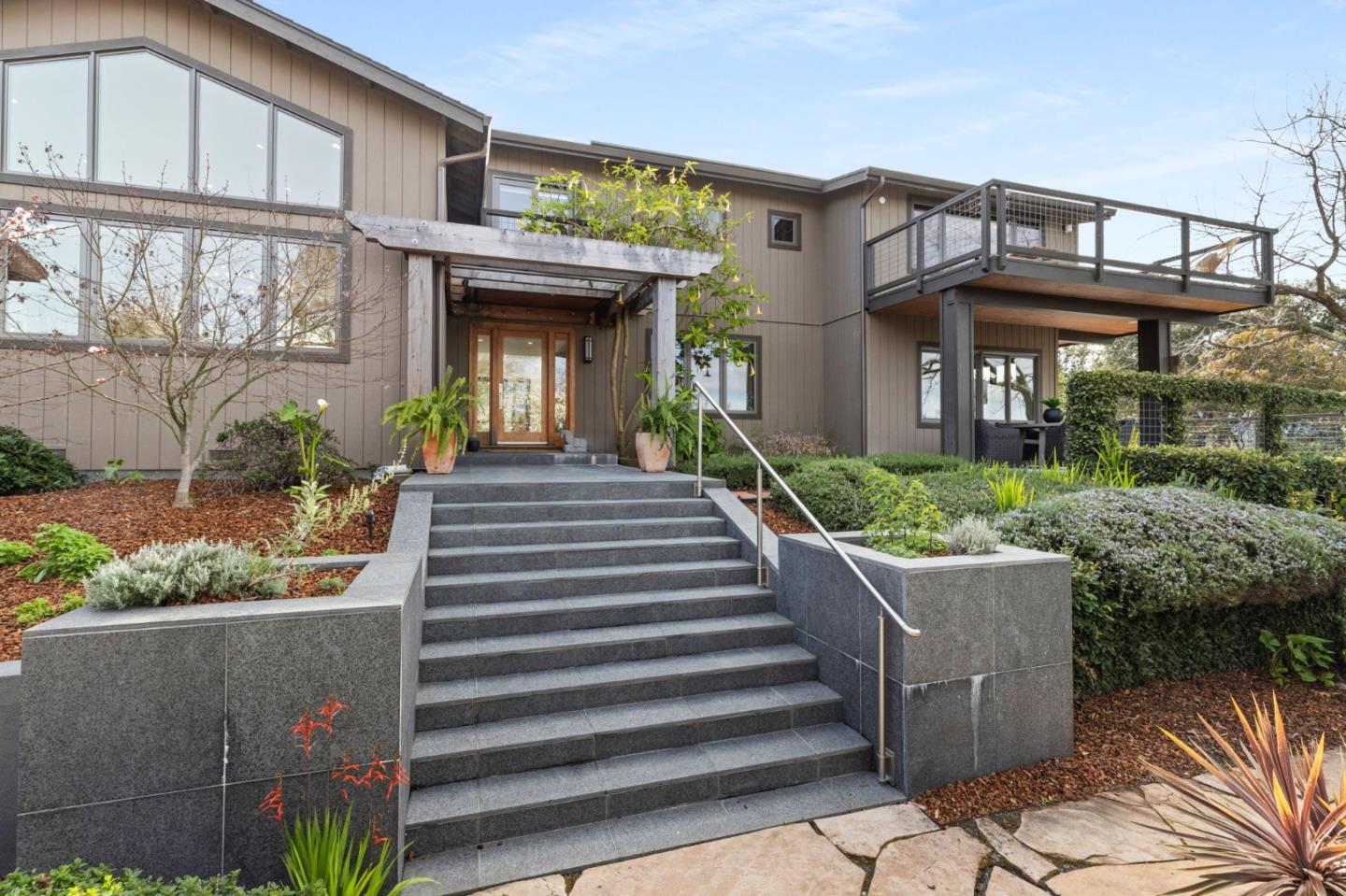 Timeless design aligns w/ contemporary details in this fabulous 5br/4.5ba home. This private 1.23-acre property provides mature landscaping, wrap-around views, & an incredible space for everyday living. Floor-to-ceiling windows fill the home w/ abundant natural light. The main level offers a welcoming entry leading to a designer kitchen w/ endless cabinets, an island w/ bar seating & large windows that frame the outdoor landscape. Off the kitchen is a family room w/ vaulted ceilings, a stone fireplace & direct access to the backyard. Gather in the formal DR or open glass doors in the adjoining LR to enjoy a large deck w/ views overlooking the peaceful pool & spa area. Completing the lower level are 2 bdrms joined by a full bthrm + an ensuite bdrm, laundry room, & versatile bonus room. Upstairs is an ensuite bdrm next to the primary retreat, which features dual walk-in closets, lovely views & a spa-like bthrm. Every room leads to an outdoor space, further showcasing the phenomenal floor plan. A detached bonus space can be used for a gym/office or hobby room. This home also offers an outdoor shower, 1/2 bath by the pool, & storage room that doubles as a wine room. Relish in trails & outdoor recreation throughout Central Portola Valley. A home like this doesn't come around often.
