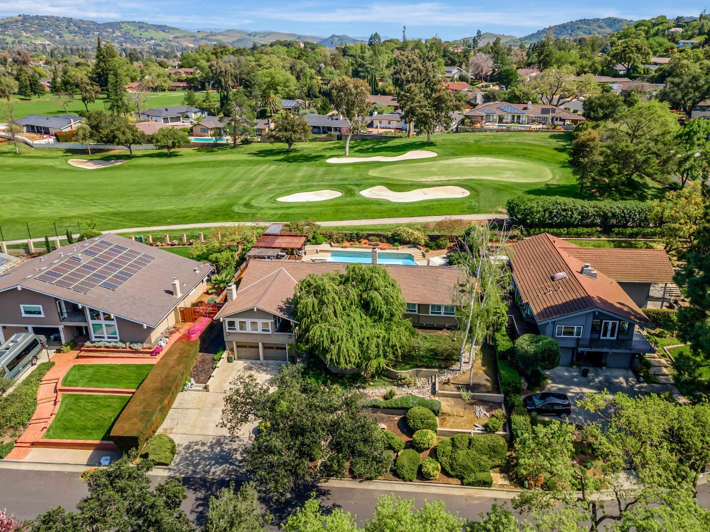 Gorgeous home in Almaden Country Club on the 2nd hole, with breathtaking golf course & mountain views. Single-level, elevated with tree-lined hill vantage point above the street. Fully remodeled. Inviting backyard ideal for entertaining a large pool and ample patio space. Bonus attic & under-home storage. Expansive ¼ acre lot. Prime location near shops, highly rated schools, parks, hiking trails, freeways, and more. A must-see gem!