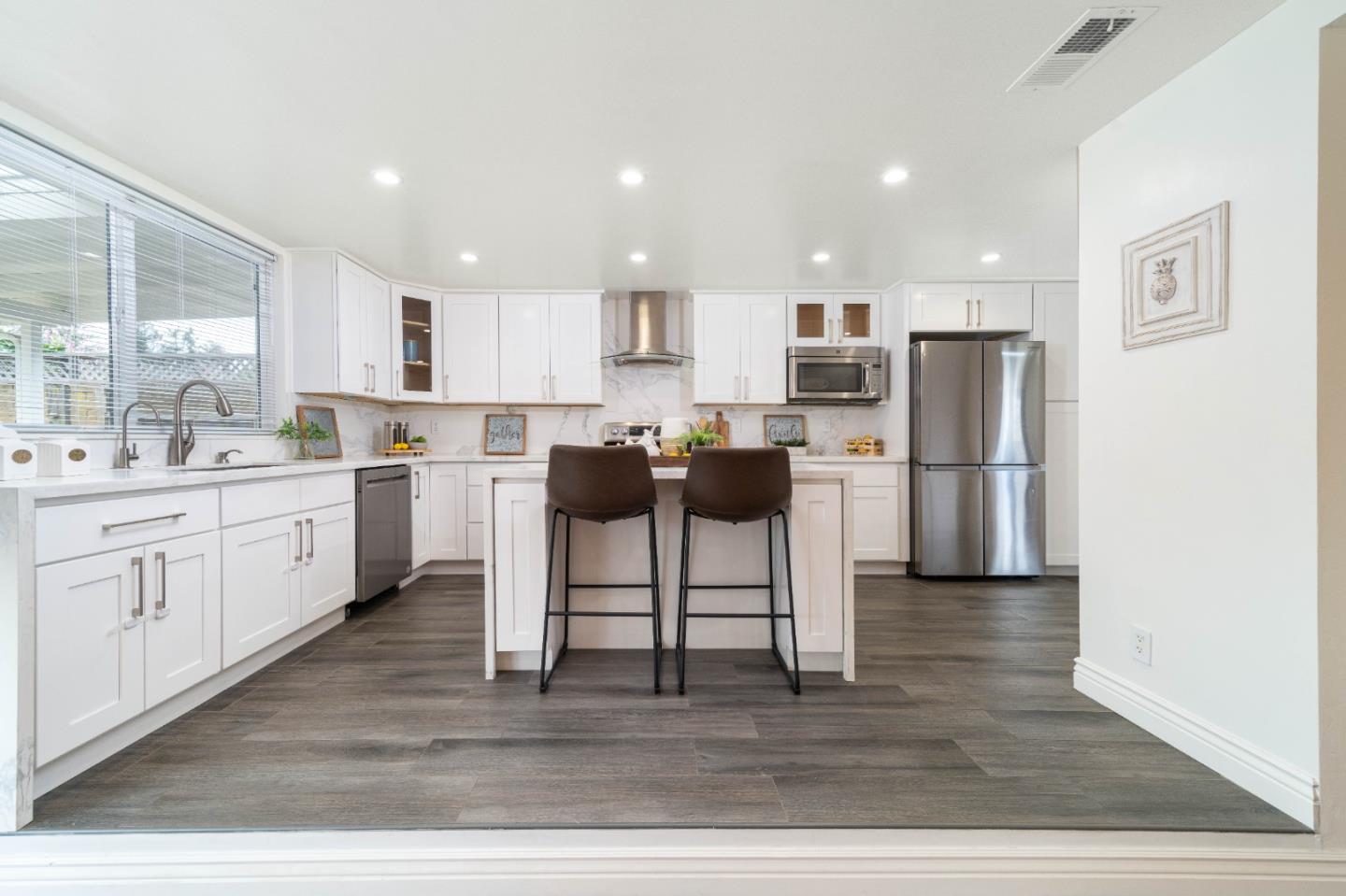 Nestled in the vibrant Blossom Valley of San Jose, this north facing gem has been meticulously remodeled to offer a blend of luxury and smart home convenience. The heart of the home features an open floor plan with stunning waterfall countertops, a chic wet bar, and seamless integration of living, dining, and kitchen spaces that is perfect for entertaining and everyday living. Sunlight fills the home, enhancing the modern and welcoming ambiance. The transformation extends outdoors to a spacious backyard, created from a filled pool, offering a private retreat for relaxation or hosting gatherings under the California sun with extremely low maintenance. Advanced smart home technology integrates lights, thermostat, and locks with app control, adding unparalleled convenience. Located moments from Oakridge Mall and Martial Cottle Park, and with easy access to major thoroughfares, this home is a sanctuary of comfort and style in a prime location, ideal for those seeking a connected and luxurious living experience.