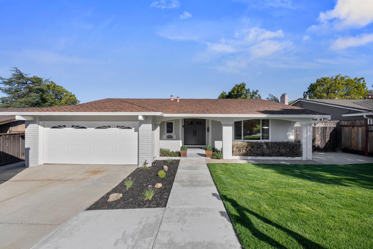 Meticulously remodeled and carefully maintained, single-story home tucked away on a quiet street abutting the beautiful foothills. Enter through custom doors to a foyer with coffered ceiling, hardwood floors w/ walnut inlay. custom moldings, raised panel doors with rubbed bronze hardware. Pilars frame the living room enhancing the feeling of spaciousness and allowing the light to bathe the interior. Hardwood floors, crown moldings and LED recessed lighting throughout the home. Updated Kitchen w/ white cabinetry, granite counters, and stainless appliances. Double glass doors allow for indoor outdoor entertaining opening to a covered garden patio and beyond to the expansive terraced garden, offers endless possibilities. The family room boasts custom wall of shelving and cabinetry surrounding the beautiful fireplace.The primary en suite has been thoughtfully remodeled w/ wall of windows opening to the rear patio. Primary bath area is upgraded and enlarged, complete with a long quartz countertop, sit down vanity, and double marble shower. Remodeled hall bath offers large jacuzzi tub, a toto, and custom inlaid tile. Walk to Top-scoring schools Majestic Way Elementary 9/10 . Sierramont Middle 10/10 .. Piedmont Hills High 10/10. Easy access to #680, #880 and #101 freeways.