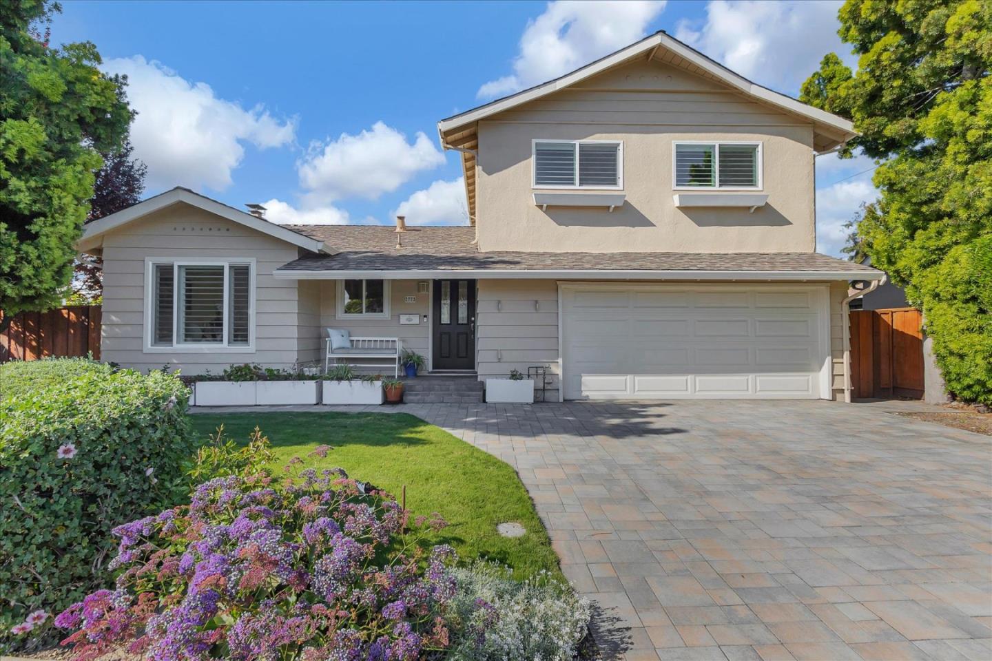 Welcome home to Crosby Court, a gorgeous move-in ready home on a large pie-shaped lot on a quiet cul-da-sac. The parklike backyard bursts with Spring flowers, fruit trees, and two patio areas to make a sweet, inviting space for entertaining. The tastefully updated kitchen includes granite counter tops, glass backsplash and stainless-steel appliances. The kitchen and dining areas open to a light-filled living room with huge windows open to the backyard, to provide natural light and indoor/outdoor living space. Gleaming hardwood floors and plantation shutters in most rooms and tile in entry, baths, and downstairs bedroom. Copper plumbing, dual-pane windows, EV charger in garage. Air conditioning as well as attic fans keep the home cool. The two and a half baths have been elegantly appointed with light tile, glass enclosures and stylish fixtures. The primary and two other bedrooms are upstairs; the downstairs bedroom with slider could be used as a family room or bonus room. Bowers Elementary (around the corner) Cabrillo Middle and Wilcox High School. This home is close to major freeways and many technology companies.