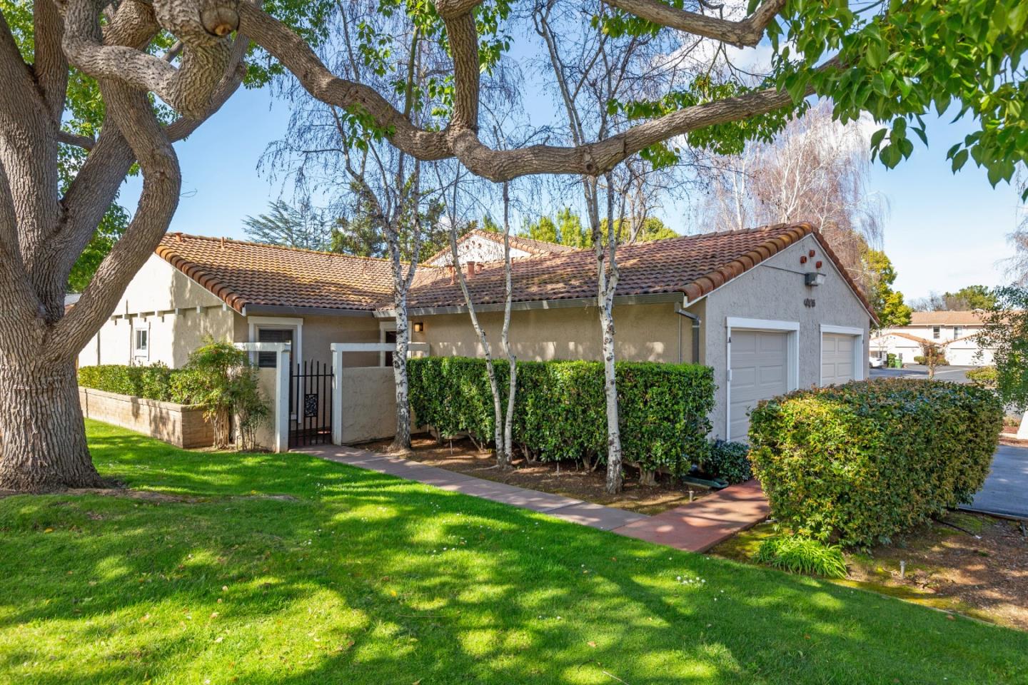 Rare find; single-story updated Campbell condo/townhome. Spacious open living room with a cozy fireplace. Large sliding glass door opens to a nice patio area bringing in natural light. Dining area with a pendant light fixture above the table. Updated kitchen with stainless steel appliances, butcher block counters, farm sink and plenty of cabinets. Two nice sized bedrooms one with a barn closet door. Windows and ceiling fans with lights in both bedrooms. Hall bath with a tiled tub/shower, vanity, wainscoting and a tiled floor. The second totally remodeled/newer bath features a large tiled shower and floor. Giant hall closet for extra storage. Fully fenced private rear yard with fruit trees and patio for outdoor entertaining. One car attached garage with laundry hook ups. Completely fenced community pool. Family friendly complex and neighborhood. John D. Morgan park is located at the end of the street w/ picnic areas, play structures, swings, restrooms and large grass areas. Prime location, near Downtown Campbell, coffee shops, stores, local restaurants and the community center. Easy access to major freeways and expressway.