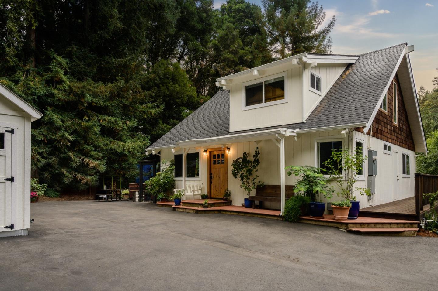 Corralitos charmer. This move-in ready family home is 2.5 miles from the Corralitos Meat Market. Perfect for Multigenerational living! Bring your dreams and move on in. This 3 bed/3 bath with bonus office is move-in ready. Lower-level space has a separate entrance, kitchenette, and bathroom. Stunning mature redwood studded parcel boasts a beautiful deck with views, three 10x12 upgraded Tuff Sheds (fit in all your hobbies), an expanded driveway perfect for your cars, RV, trailer, boat, and more. Fenced lower yard for Fido or to keep the deer from your garden. Seller completed substantial upgrades from 2019 through 2023. New Roof, gutters, downspouts completed in 2023! Other items new windows, HVAC, new wood stove, completely repainted inside and out, bathroom remodel, office, 3 Tuff Sheds, new interior and exterior doors, electric hookups for spa/sauna/other, generator ready, new lighting, tankless water heater.