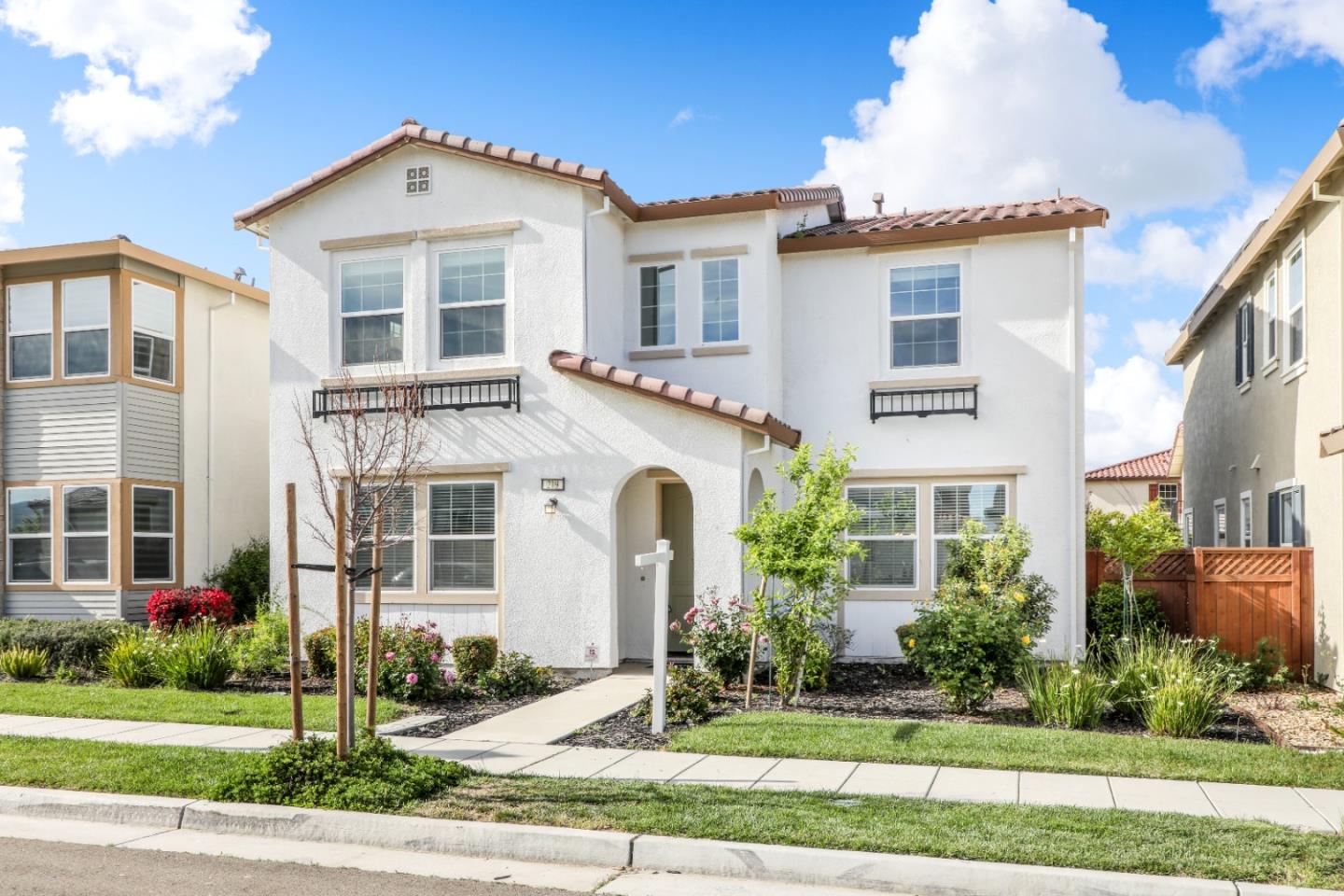 Welcome to this beautiful 4-bedroomed 3-bathroom single house in Mountain House. Built in 2019 with 2551sqft. Kitchen with large island, granite countertop & tile backsplash. Stainless steel appliances including 6 burner range, oven, microwave, refrigerator& dishwasher. Open & bright floor plan with tile flooring throughout the 1st floor living room, dining area & kitchen. Carpeting flooring on stairs and all bedrooms. Ideal 1 bedroom with full bath on 1st floor for guests or elderly parents. Large master bedroom with free standing bathtub, shower room & walk in closet. Convenient laundry room on 2nd floor. Spacious 3 car garage with EV charger ready. Solar panels monthly lease $63. NO HOA fee and low maintenance cost. Walking distance to community park & good schools.