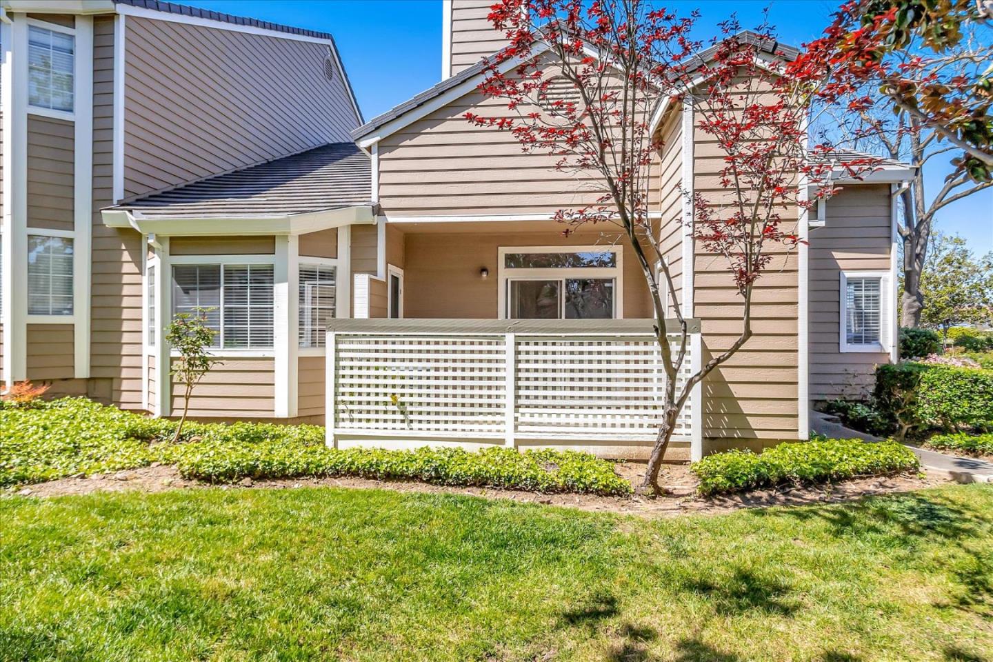 Discover unparalleled comfort and luxury at 'Park Almaden'. This exceptional unit offers two generously proportioned bedrooms with soaring high ceilings, providing a sense of spaciousness. Positioned as an end unit, relish in enhanced privacy and tranquility. The lavish Primary Bedroom Ensuite features a charming Bay Window, flooding the space with natural light, along with a vast mirrored closet and patio access for serene outdoor moments. The ensuite bathroom boasts double sinks and ample wood cabinets for storage. Entertain effortlessly in the expansive open-plan living room with a cozy fireplace and seamless sliders leading to your private patio, offering lush tree views for a serene ambiance. Enjoy the convenience of indoor laundry facilities and benefit from a 1 Car Garage Space, extra Parking Places, and Storage Closet Off Patio. Immerse yourself in the unparalleled amenities of 'Park Almaden', including pool, hot tub, clubhouse, and gym. With easy access to Highway 85 & 87, and proximity to Lake Almaden's trails and Oakridge Mall, experience the ultimate blend of luxury, comfort, and convenience.