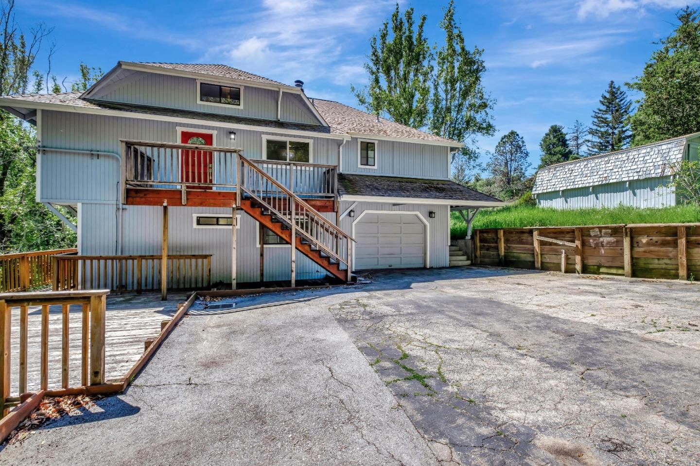 Abundant sunshine and privacy, a unique setting, located on a private road with three other dwellings. Home enjoys large windows facing South with unobstructed views of the mountains in the distance. Plenty of paved parking in the front behind long and private gated roadway. Home is currently situated with two bedrooms downstairs while the master bedroom is located on the main floor. Great Room off of kitchen is perfect for entertaining. This home can easily provide for a separate ADU within the structure if one desires multiple units. Bonus, a short walk to downtown...
