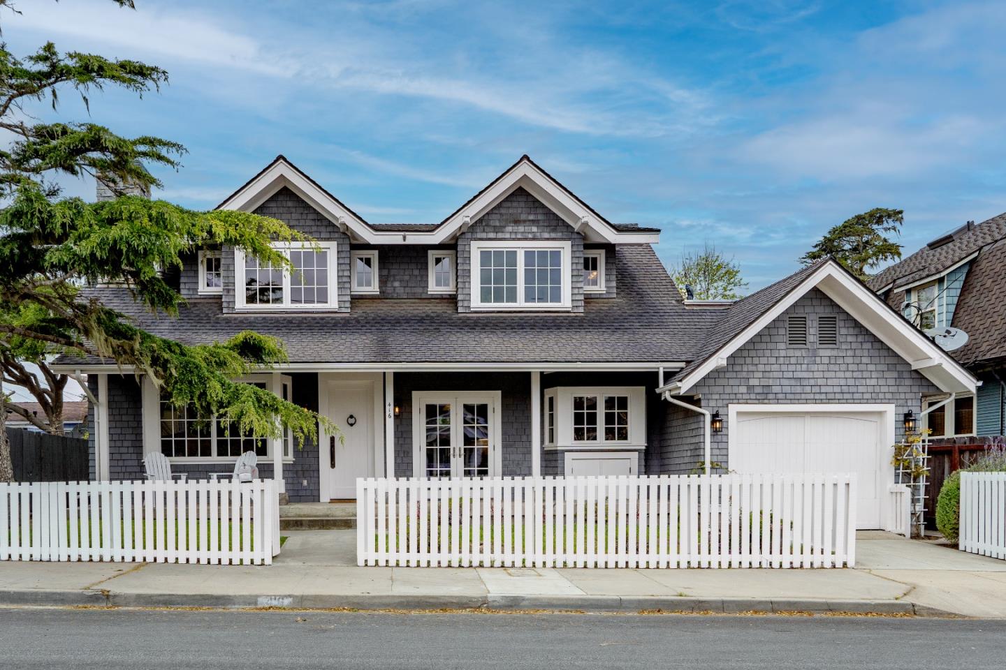 Welcome to your beautiful, Coastal forever home in one of Pacific Groves most sought-after neighborhoods. This thoughtfully designed two-story Cape Cod features vaulted ceilings in every room, custom wainscoting, White Oak natural floors, an open concept kitchen, dining and living room spaces, and a wood burning fireplace in the living room. The home also enjoys plenty of natural light from its skylights, and numerous windows. Its primary suite is a sanctuary with a cozy, gas fireplace, a walk-in closet, and a private patio off the large bathroom. Each of the three downstairs bedrooms feature French doors leading to a patio in the private backyard. The homes location is highly walkable, with many of Pacific Groves highlights, including Lovers Point and local restaurants, just a few blocks away.
