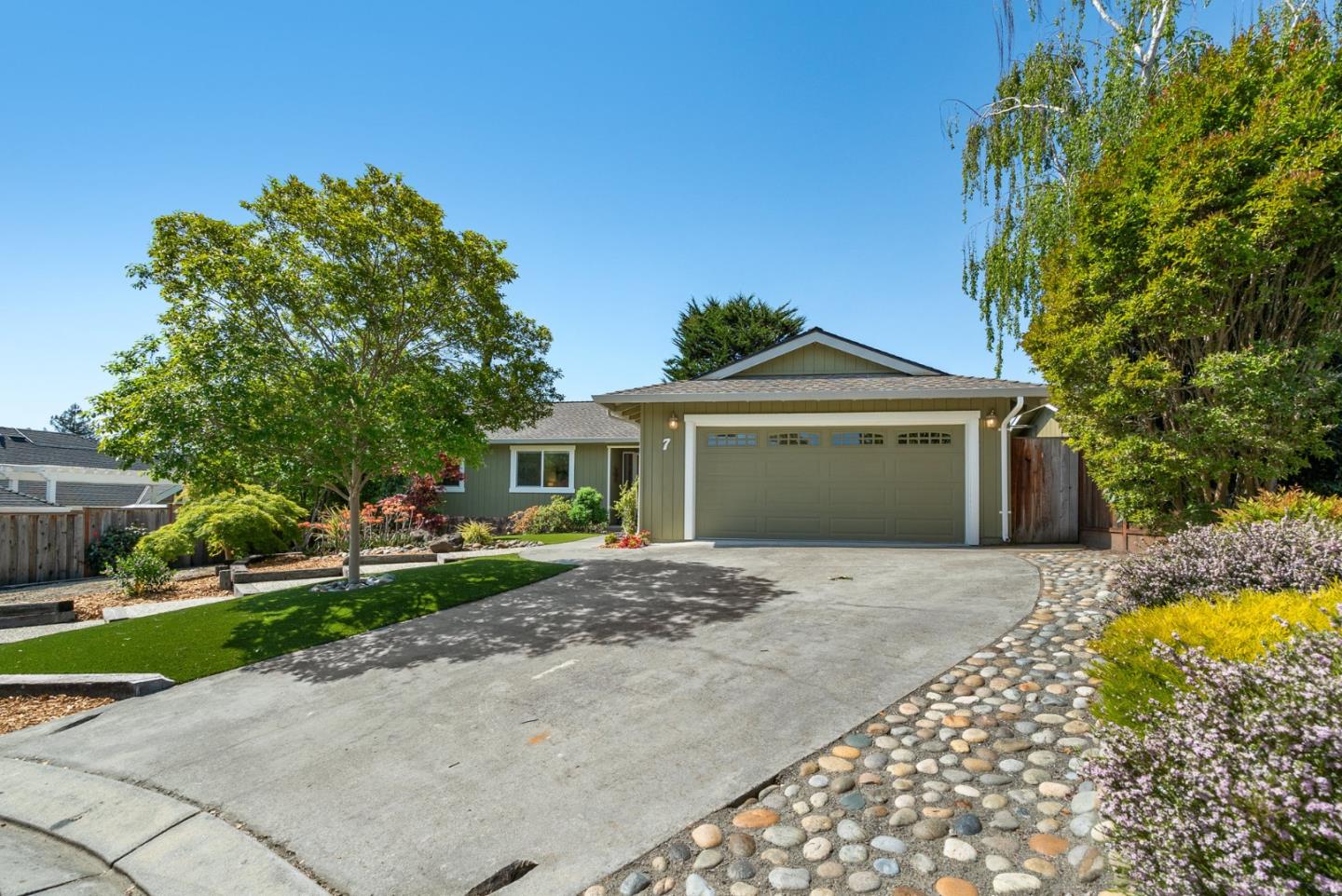 This is the one you've been waiting for! Spectacular single-level ranch-style home on a sunny 1/4 acre parcel at the happy end of a quiet cul-de-sac. Meticulously maintained and beautifully updated, this home exudes pride of ownership. The light, airy open floor plan will captivate you from the moment you step inside. Featuring a large country kitchen/great room with a spacious breakfast bar, granite countertops, stainless steel appliances and french doors out to the sunny backyard. Boasting a formal living room with high, open beam ceilings AND a formal dining room - perfect for gathering with friends and family. The backyard is a gardener's paradise with fruit trees, meandering pathways, abundant flowering plants and raised garden beds. Two finished sheds with AC would function great as home offices or kids' play areas. Squeaky clean and move-in ready with a new roof, air conditioning and fresh interior paint/carpet. Attached 2 car garage and room to park an oversized vehicle. Walking distance to all things Scotts Valley - Siltanen Park, Glenwood Preserve, restaurants, coffee, brewery and award-winning SV schools. Consider all of your boxes checked. Welcome home, you belong here!