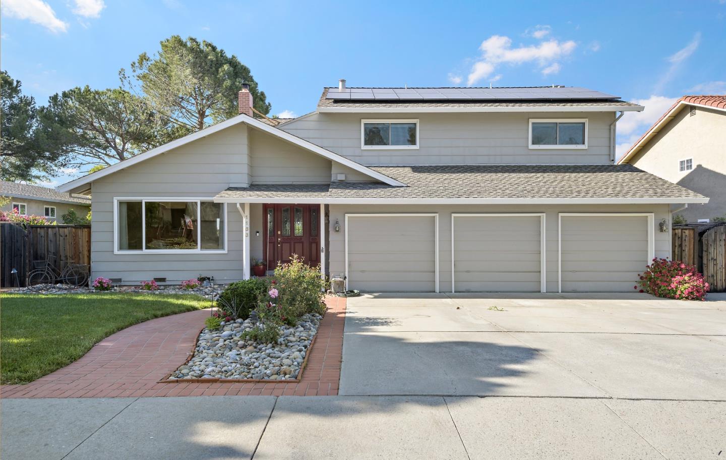 Welcome to 1183 Nikette Way, highly coveted Almaden Valley. This residence spans 2820 square feet and boasts 5 bedrooms and 3 bathrooms, resting upon a generous lot of 10,019 square feet. As you step inside, you are greeted by an impeccably designed interior that seamlessly blends a spacious living room and formal dining area, with engineered hardwood flooring that exudes warmth. A captivating fireplace adds to the ambiance. Ideal for multi-generational living, a full bedroom and bathroom are conveniently located on the first floor. The gourmet kitchen with stainless steel appliances a central island with an induction cooktop, serves as a culinary haven, perfect for entertaining. Recessed lighting throughout and a separate family room enhance the functionality, while in-unit laundry facilities provide added convenience. The primary bedroom offers a luxurious retreat with a spacious walk-in closet complete with built-in cabinets and a serene seating area. Remodeled bathroom and remaining bedrooms offer ample space, presenting opportunities for home offices or additional living areas. Step outside from the family room onto a tranquil trek deck, offering endless views of the valley below. A private pool perfect for entertaining guests. Walking distance to Williams Elementary.