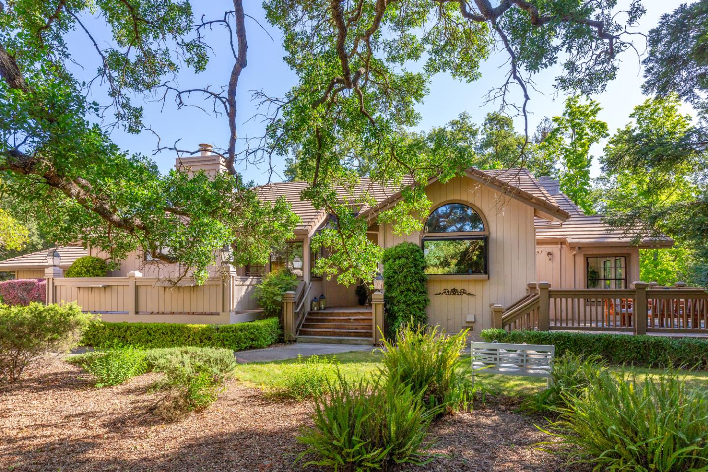 The homes premier location within The Villas gated community provides ultimate privacy in a park-like setting with no neighbors behind and direct access to vast green space for recreation and play. The newly updated eat-in kitchen offers deep quartz countertops, full-height backsplashes, high ceilings, and stainless steel appliances, and opens to the light-filled dining room with a convenient serving buffet. The living room has soaring ceilings, lush views, a fireplace, and outdoor access. The expansive primary suite offers a large walk-in closet, fireplace, private deck, and a bright en suite bath. There are two additional well-sized bedrooms, one currently configured as an office. A deck wraps around the home and has plenty of room to relax and dine alfresco overlooking the verdant grounds and mature trees. Community clubhouse, pool, and tennis courts. Located next to Guadalupe Oak Grove Park and close to shopping, dining, golf courses, trail heads, commute routes and more!