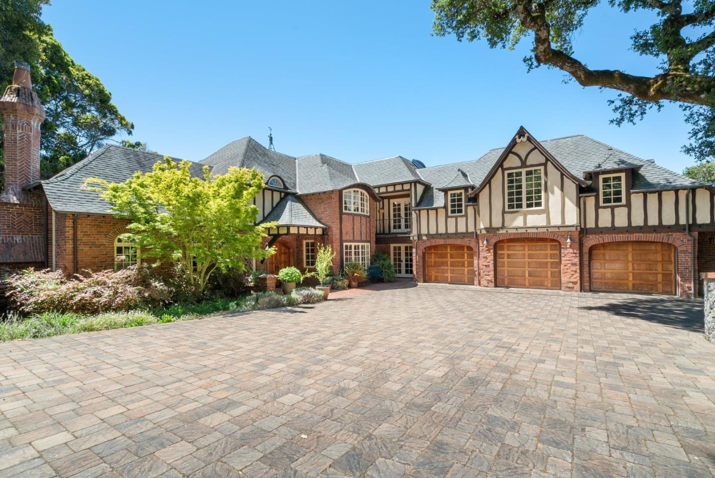 Close to the ocean & within easy reach of Silicon Valley, yet far enough away to enjoy the privacy & peace of nature. Beyond a gated entry, this stunning Tudor-style estate sits grandly on 2.5 acres of mostly usable land, adorned with beautiful flowers, vegetable gardens, majestic trees, & open meadows. The motor court leads to a 6-car garage, featuring air compressors & adjacent to an external 10-ton service bay. Meticulous attention to detail is evident throughout with high-end materials, including travertine, custom woodwork, & smooth Venetian plaster walls to enhance the luxurious ambiance. Designed for both enjoyment & entertainment. The ocean-view kitchen is equipped with professional-grade appliances, a walk-in & butler's pantry with prep area. The expansive 1600 sq. ft. great room includes a second kitchen, ideal for large gatherings. Retreat to the elegant living room with high ceilings & fireplace, the cozy family room library, or the primary suite with a grand bath. The property boasts a 600 sq. ft. finished basement perfect for a wine cellar/office & a 1000 sq.ft. unfinished storage area, great for a workshop or with lots of additional storage. Multiple patios & decks offer stunning mountain vistas & ocean views. A must see!