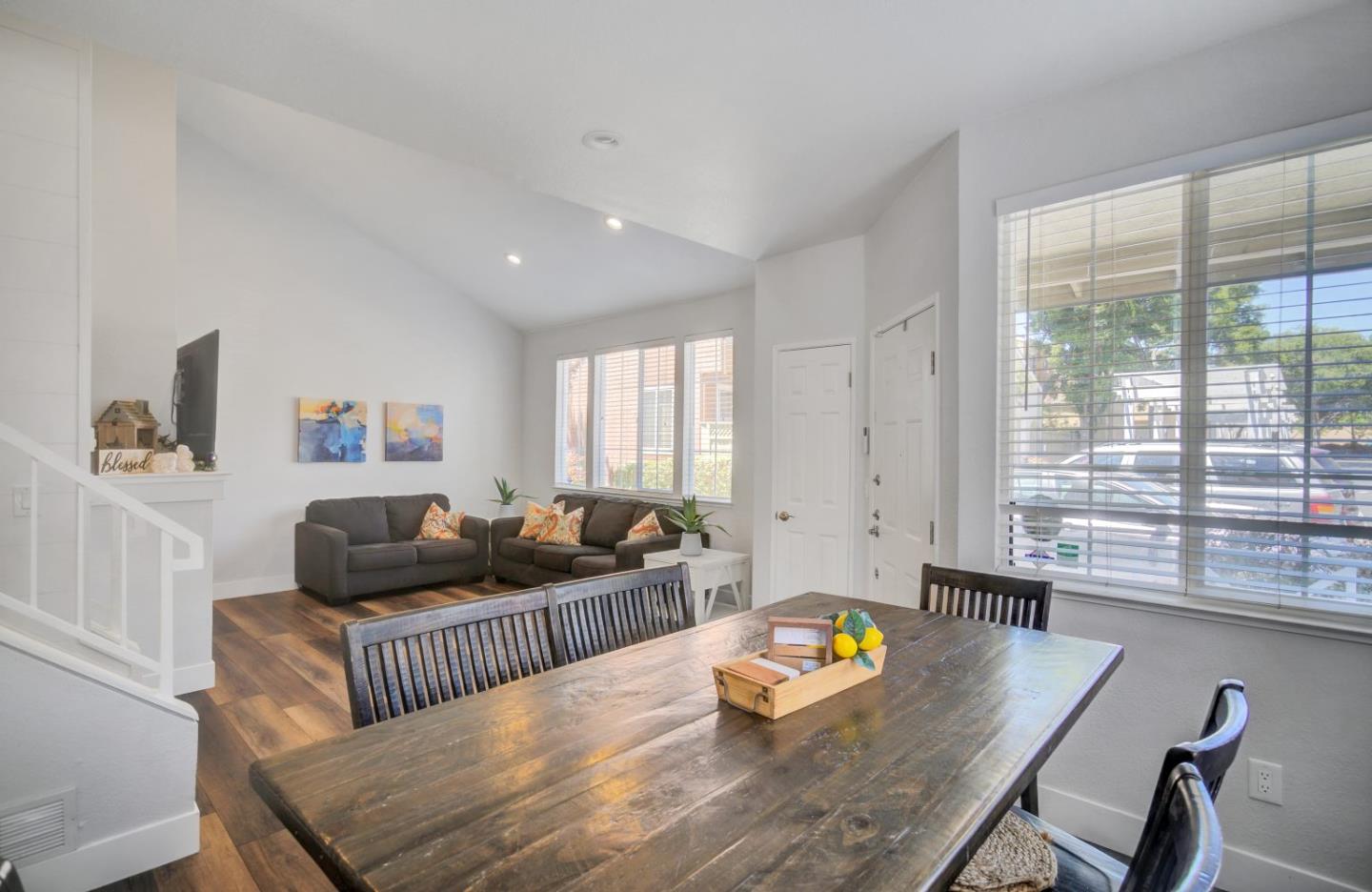 Don't miss out on the opportunity to own this rare modern two-story Swenson Townhome nestled on a coveted corner lot. Experience the epitome of contemporary living as you step into this bright and airy home with a seamless modern floor plan, vaulted ceilings, & an abundance of natural light that floods every corner. Meticulously maintained, this home feels like new, featuring an open kitchen adorned with new backsplash, granite countertops, and ample storage space. Retreat to the luxurious master suite, complete with a spacious walk-in closet, large tub, and custom tile accents. Enjoy the convenience of a centralized location minutes away from Downtown San Jose, and the University. This home is packed with upgrades, including new flooring, fresh paint, updated sliders and upper windows, and a tankless water heater. Recessed lighting throughout adds a touch of elegance, while the dining area and breakfast nook offer versatility for a home office or playroom. The downstairs laundry area is suitable for oversized units. Entertain in the low-maintenance backyard, perfect for BBQs and gatherings with friends. Quiet and well-maintained association. Parking includes a tandem garage, bonus room, and ample interior complex and street parking - a rare find in this sought-after area.