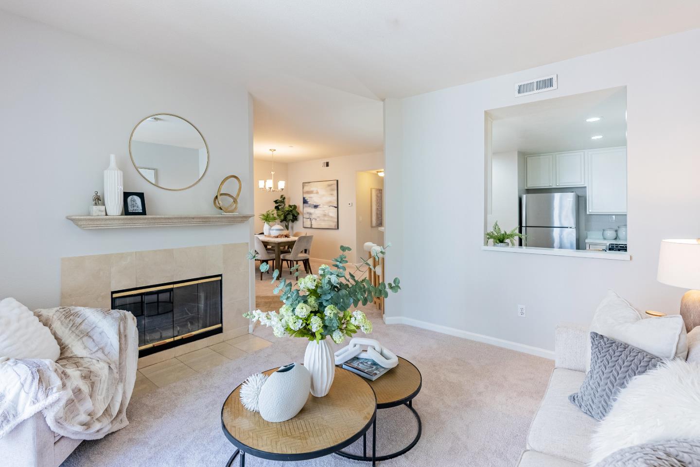 Experience serene living in a peaceful condo nestled within a tranquil, park-like community. Just a stroll away from the renowned Fair Oaks Park and minutes from downtown Sunnyvale with easy Caltrain access. This home boasts a welcoming floorplan with carpet flooring, abundant natural light through dual pane windows, two entrances, heating/AC, a wood-burning fireplace, and an in-unit washer/dryer in the utility closet. The gourmet kitchen is a chef's dream, featuring high-end stainless steel appliances, quartz countertops, ample cabinetry, a relaxing breakfast bar, and a cozy dining area with unique glass tiling. Each bedroom is spacious and includes its own closet, while the primary bedroom offers dual closets and a spa-like en-suite bathroom with a shower over tub. Additional highlights include a garage, a sunny balcony with views of the flower-filled courtyard, a playground, a gazebo, and a community swimming pool with outdoor showers. Ideally located near restaurants, shopping, parks, and major tech hubs, with easy access to Highway 101, 237, Central Expressway, and Caltrain.