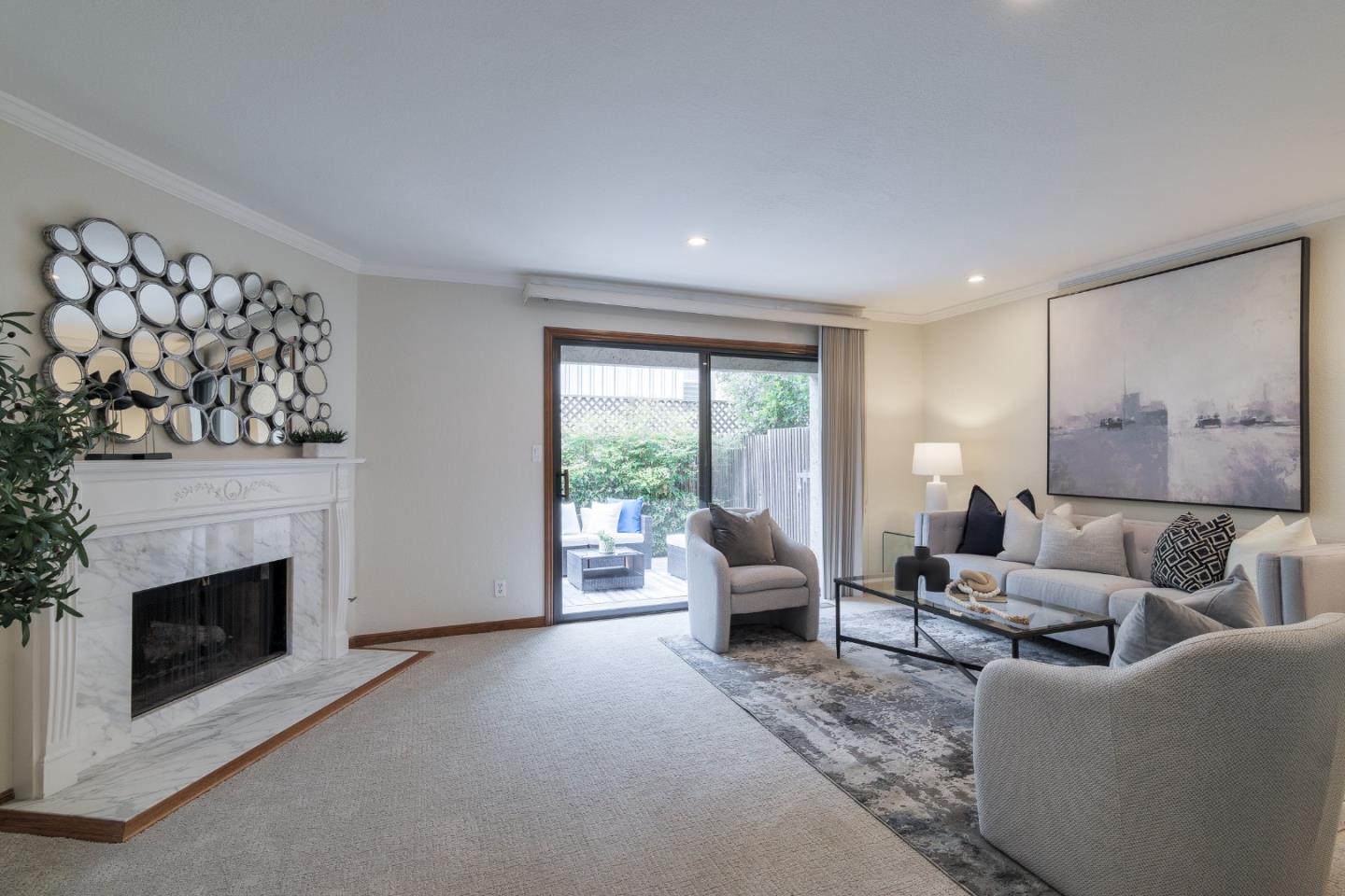 Rare chance to own a beautifully remodeled, ground floor condominium in a building of just three units, in an unbeatable location. Step into the newly carpeted living room, featuring an elegant Calacatta marble fireplace, and seamlessly transition to the adjoining dining room, ideal for entertaining. The gleaming kitchen is outfitted in stainless-steel luxury appliances with quartzite countertops. The primary bedroom features a light-filled en suite bathroom adorned with marble finishes. A second bathroom is also clad in marble and incudes a sparkling bath/tub combo. Enjoy hardwood floors, crown molding and the convenience of in-unit laundry. Relax on the serene private patio with travertine pavers, accessible from both the living room and primary bedroom. This charming building with low HOA fees is set among lush, landscaped grounds with detached one-car garage space with EV charger and additional dedicated driveway space. Located on a tree-lined street near top rated schools and downtown Los Altos. Easy access to Hwy 280, Foothill Expressway, Stanford University and top Silicon Valley employers.