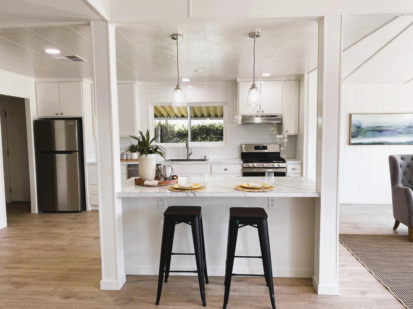 Stunning New Remodel! No Property Taxes. Double pane windows. Huge white kitchen, new stainless appliances. Breakfast bar. Spacious open floorplan. Great for entertaining. New laminate flooring throughout and new carpet in the bedrooms. Lots of attention to detail. New lighting throughout. Beautifully remodeled bathrooms. Separate laundry room. New roof to be completed end of month. Located in Willow Glen, in the highly desirable mobile home park, Mill Pond Mobile Home Community of Willow Glen (55+ Age Requirement). Close distance to great shopping, dining and public transportation. Space rent $1,124.