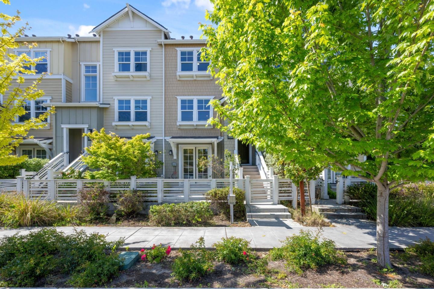 Welcome to this stunning townhome built in 2017. The main level boasts an open floor plan with abundant natural light and elegant tile flooring. The gourmet kitchen features a large island, quartz countertops, stainless steel appliances, and plenty of cabinets. There's also a convenient powder room nearby. Adjacent to the kitchen, sliding doors open to a private balcony. The upper level includes a primary suite and two guest bedrooms. The primary bathroom offers a double vanity with quartz countertops, while the hallway bathroom features a double sink and a tub with an overhead shower. The washer and dryer are conveniently located on the same level. The ground level hosts an additional suite. This home is equipped with a SunPower solar system. Located 0.6 miles from Google campus, within walking distance, it's also close to Meta, Microsoft, and other tech giants. Nearby shopping includes Costco, Safeway, and Best Buy. Minutes away from Downtown Mountain View, Downtown Los Altos, the Village at San Antonio Center, and Shoreline Park. Easy access to HW101 and 85. Within Los Altos High School district. Don't miss this excellent opportunity.