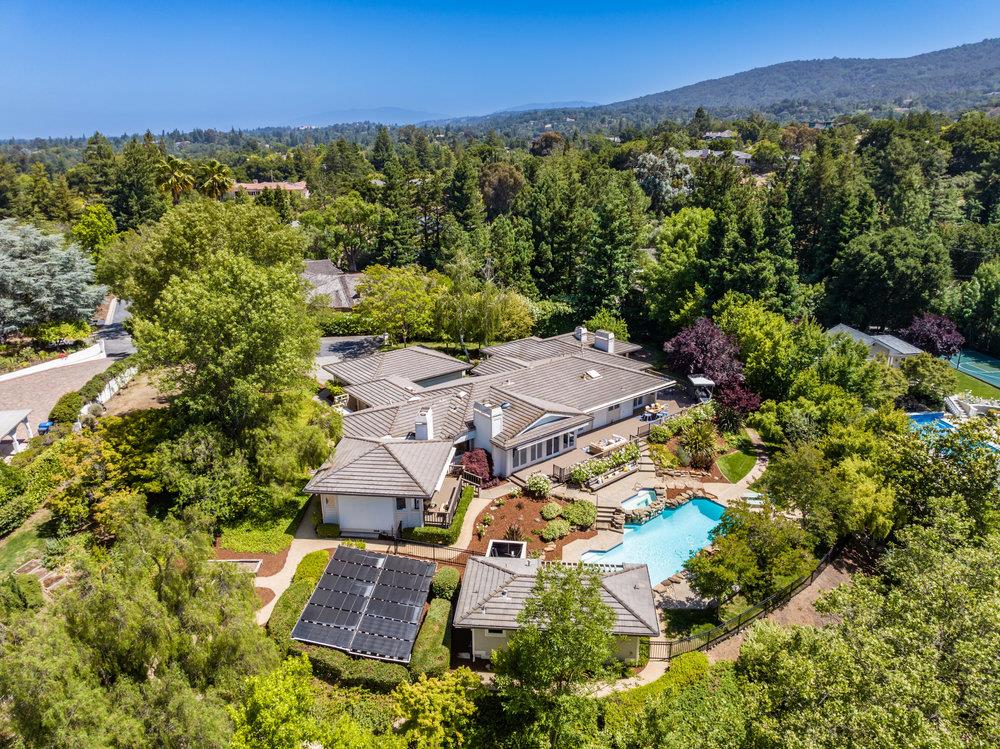 Welcome home to a private knoll-top home in a beautiful location, close to downtown Los Altos and also very close to commute routes. A recent transformation with the highest quality materials has truly enhanced this home, which is desirably all on one convenient level, featuring space for everyone and additional amenities of a pool, spa, pool house, two childrens play areas and lush landscaping at every turn. The home is light and bright throughout with a beautiful Southwest exposure, allowing for views of the always verdant Western Hills. Newer white oak floors throughout the public rooms, wall-to-wall windows and French doors open to the rear deck and private gardens. Adding to the accommodations is the detached, remodeled pool house with large kitchenette making it perfect for poolside entertaining with its retractable Nanawall glass door entry and matching windows above an outside counter with bar seating plus a full bath. All around, landscaped gardens enhance the setting, a playground and separate playhouse provides recreation for younger children, and the pool/spa can be separately fenced with onsite removable child safety fencing. Close-in convenience just moments from the Village with an enviable indoor/outdoor lifestyle - allowing the best of Silicon Valley living.