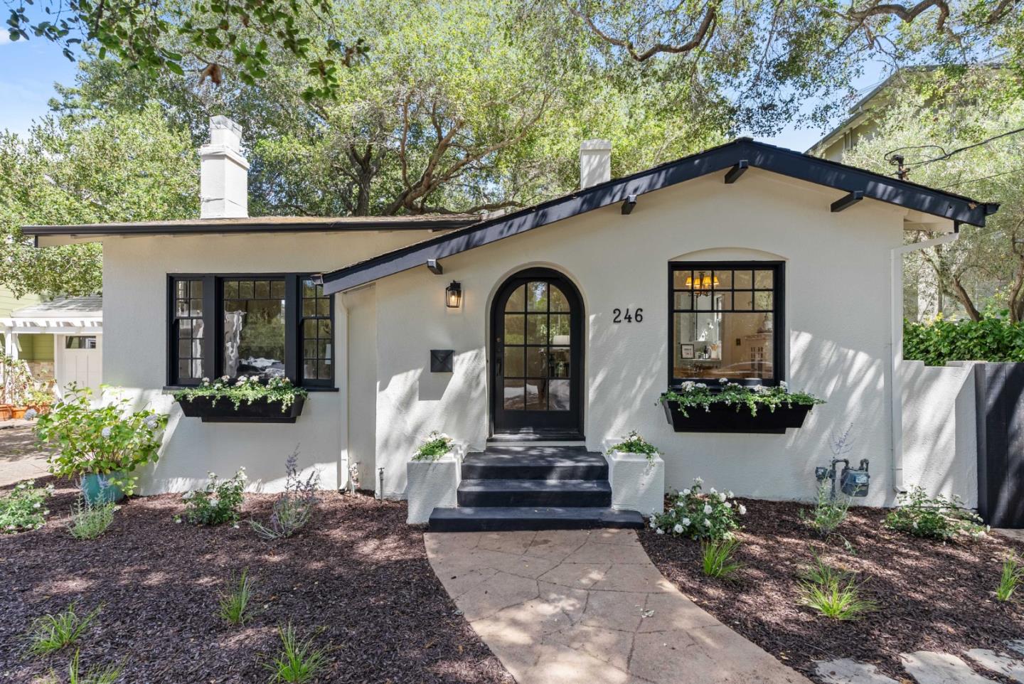 Charming 1923 Spanish bungalow nestled in the heart of downtown Palo Alto, bordering the San Francisquito Creek. The home boasts a spacious living room, a separate dining area, and a sunny, bright kitchen. The yard features two stunning heritage live oaks, one gracing the front yard and the other enhancing the backyard. Conveniently close to the shops and dining on University Avenue, with Stanford University just a short distance away.
