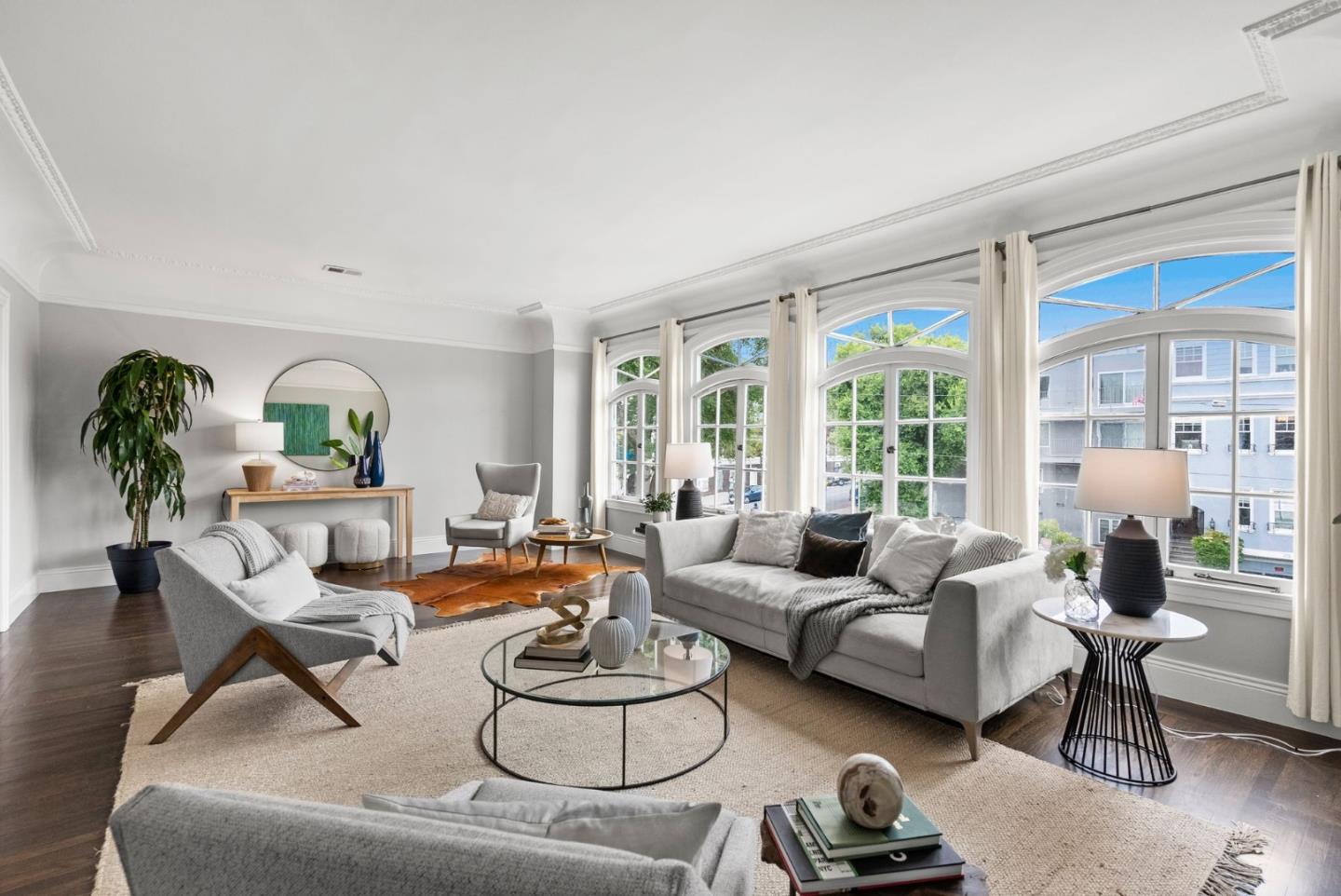 Bright and beautiful gracious top floor condo in excellent location with high, curved ceilings in classic Edwardian building. Versatile floorplan consisting of 3br/2ba plus office, independent one-car parking in garage, in-unit washer/dryer, and additional spacious separate storage unit. Magnificently situated (with 95 Walkscore!) on Presidio Heights border at Lake St. near grandiose architecture, vibrant streets, upscale boutiques, shopping, cafes, bakeries, restaurants, convenient public transportation, grocery stores, Farmers Market, Presidio Park & Golf Course, Golden Gate Park, & so much more! Generous, versatile floorplan with an abundance of natural light, hardwood floors, and gorgeous molding and trim detail throughout. Stunning gourmet kitchen features stainless steel appliances, Wolf gas range/oven, slab counters, & extensive custom cabinetry. En-suite master bath features large walk-in shower with custom tile/glass & two sink vanity. Spacious upper foyer with large skylight could be used as study or other flex space. Superior east-facing, dramatic oversized curved windows in expansive living room! Must-see!