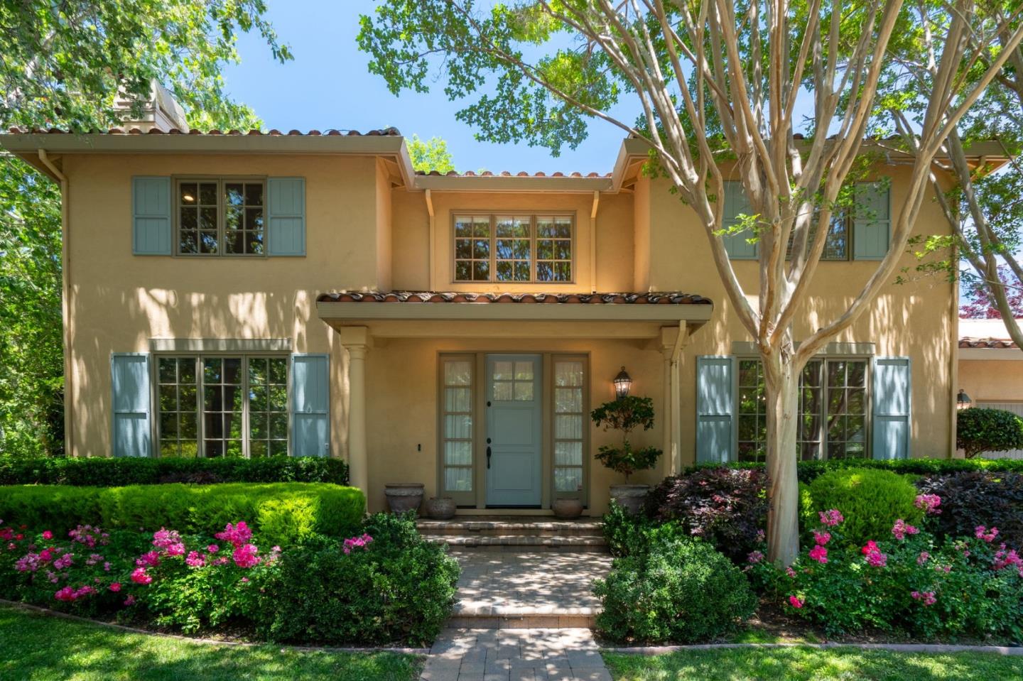 Experience a timeless design in the sought-after community of Vintage Oaks. This spacious two-story home on the corner of a cul-de-sac street offers beautiful views from every window, with seasonal blossoms and fruit trees gracing the landscape. Inside, the home features maple floors, carpeted bedrooms, recessed lighting and fireplaces in both the living and family rooms. Complete with a main-level bedroom suite, this four-bedroom home comes with an upstairs office and custom built-in cabinetry. The outdoor space features a pool, spa, fire pit terrace, and barbecue center. Conveniently located near major highways and major tech companies. Enjoy the benefits of a prime location with easy access to downtown Menlo Park and Palo Alto, and close proximity to Seminary Oaks Park, Menlo Park VA Medical Center, Burgess Park and Stanford Shopping Center. This home makes everything accessible to daily living, filling one with gratitude for having such a place to call home.