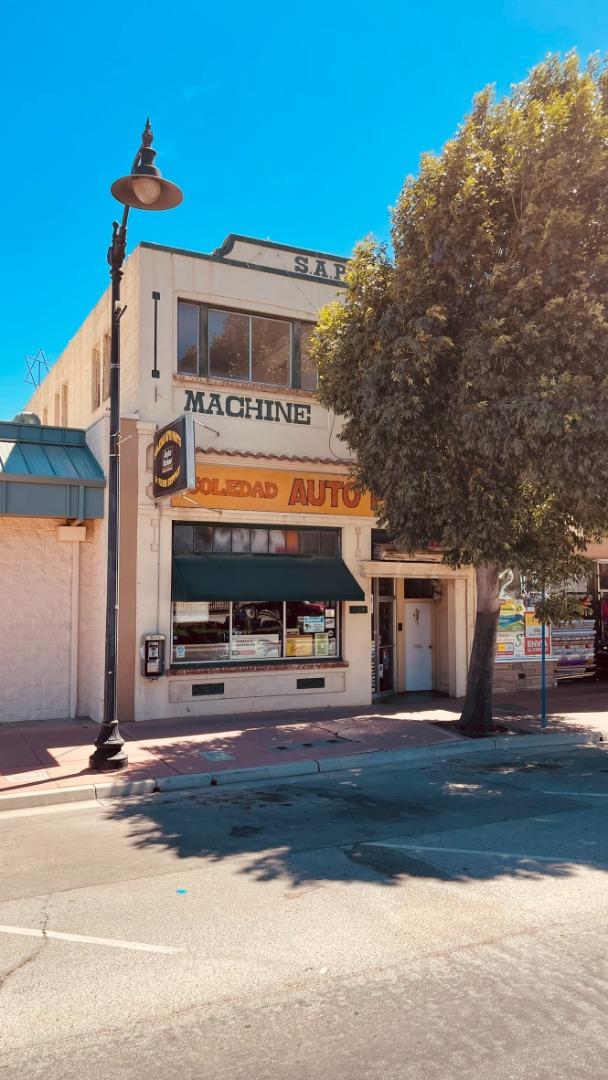 Nice opportunity to purchase this Commercial & Residential offering in the heart of the City of Soledad. This offering consists of a 2,297 square foot retail storefront located along Front St, currently leased to Soledad Auto Parts who has been the long-time tenant. Upstairs is a 2-bedroom, 1-bathroom apartment that is approximately 1,335 square feet with an outdoor patio and views overlooking the city. The apartment is currently vacant and can be leased out at the current market rent. Take advantage of the growth of the City of Soledad and their revitalized downtown with this commercial/residential opportunity along Front St in downtown Soledad.