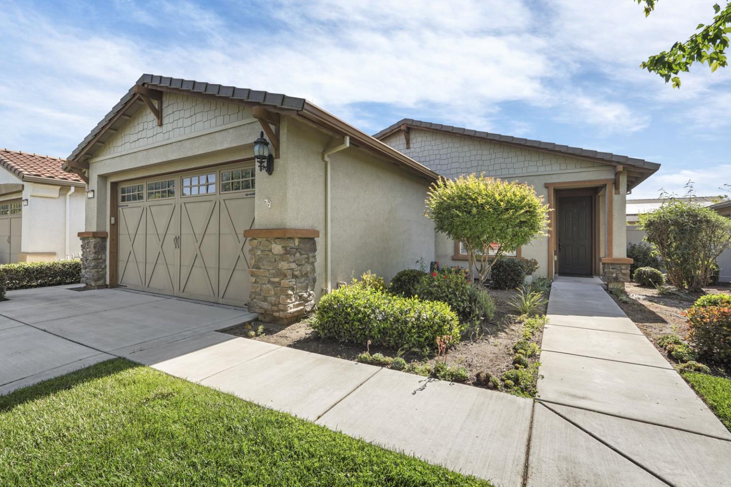 Welcome to Del Webb/Woodbridge 55+ community. This is your chance to own a slice of paradise in the highly sought community. You'll love the like-new luxury features: large ensuite primary bedroom, crown molding, granite counters, 9ft ceilings, plantation shutters, counter seating, coffee bar. Included are washer/dryer & refrigerator. The immaculate home is situated on a large, private lot in a park-like setting. You will enjoy the covered patio, two additional seating areas for entertaining, low maintenance landscaping, crushed granite paths, drip irrigation, raised planting beds, & numerous fruit trees. Take advantage of the parks & many amenities: swimming, tennis, pickleball, baseball, & clubhouse activities. Located close to parks, shops and freeway access. Don't miss this ideal & extraordinary opportunity to own this ready-to-enjoy home and oasis! *Only one person needs to be 55.