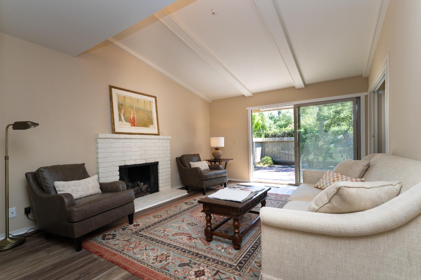 One bedroom one bath end unit with fireplace. New vinyl plank floors and new double paned sliding doors and windows throughout. Charming brick patio located right on the walking berm. Fresh, clean and move in ready!