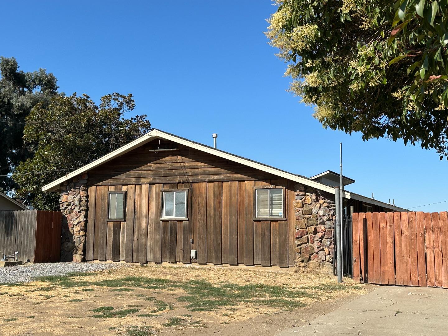 Incredible potential in this single-story ranch home on just under 1 acre in San Martin. Tile counters in the kitchen, beautiful rock fireplace in the spacious living room, high ceilings, large walk-in closet in the primary bedroom, all bedrooms with ceiling fans. This property is serviced by a private well, septic, and natural gas. Large, gated access to the rear of the property. Oversized covered patio area perfect for new outbuilding or entertaining. Property is in the SB9 development zone and may be subdividable.