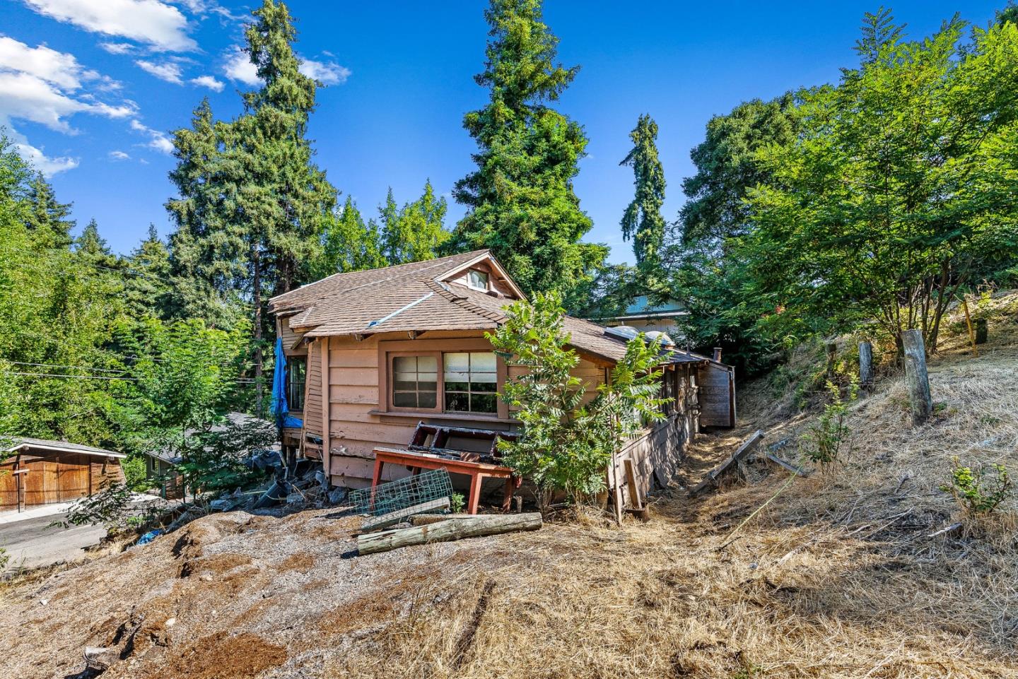 Calling all contractors and dreamers! Come build your sanctuary in the beautiful Santa Cruz Mountains. Beloved Mount Hermon. A vibrant community within the quaint town of Felton, CA. Here is a great opportunity for contractors and investors who want to be a part of something bigger! A tree damaged this cherished cabin and the sellers are ready to move on. CASH ONLY due to condition. Also includes APN 066-151-33 for additional sq. ft. Big sunny lot! Plenty of parking in front of the home, just past the tree with the 24 on it. DO NOT park on the driveway that belongs to the neighbor. That is a driveway. This home will need a new septic system among other things. Please do not go to the property without your agent. If you are looking for a project in a most beautiful place to call home, this might be it. Connect with your agent and come take a look!