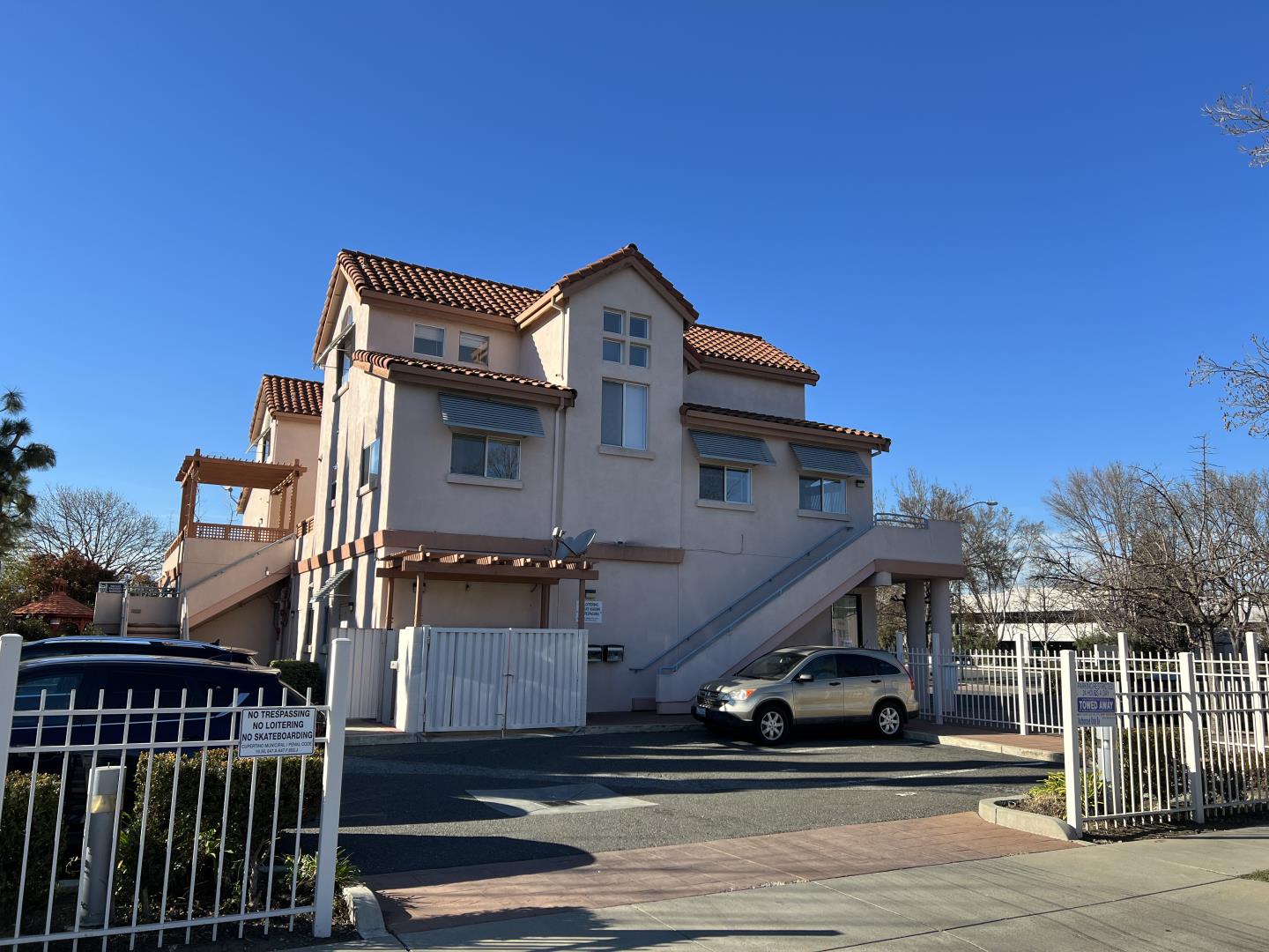 Light and bright floorplan, 2-story condo unit in Cupertino off Stevens Creek Blvd. 3 bedrooms and 3 full baths. Very large living room/dining area. Conveniently located condo unit in Cupertino, minutes drive/walk to Apple, Cupertino Village, Cupertino Square, Lawrence Expressway, easy access to 280, Top Cupertino schools. Totally remodeled with new tile flooring on the main floor, new carpet on the upstairs. Inside laundry. Updated kitchen with stainless steel appliances. Updated 3 bathrooms. Central A/C, recessed lightings, New interior paint. Spacious common patio and a private balcony off the living room with its own staircase up. 2 assigned parking spots for unit 3. Unit is on the second floor of the medical offices, very quiet, no neighbors below.