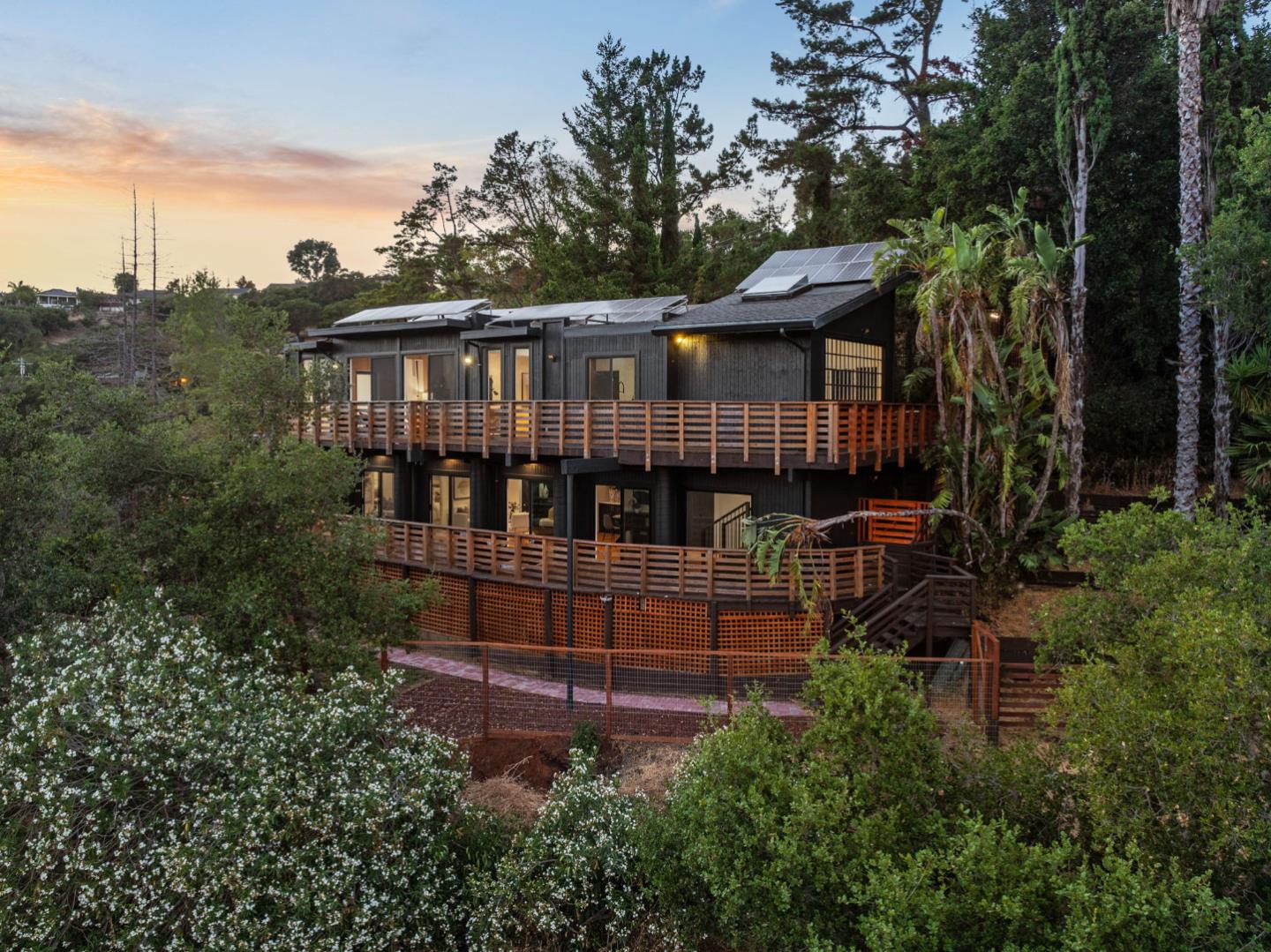 Situated on 1.25 acres of pristine land, this exceptional estate boasts awe-inspiring views of verdant mountains and rolling valleys, offering unparalleled privacy and sophistication. Meticulously remodeled with an eye for detail, this custom home features brand-new finishes that elevate its luxury feel and functionality. Step into a modern, open-concept kitchen that is a chefs dream, complete with abundant storage, a striking large island, a 6-burner range, and top-of-the-line appliances. Expansive windows, sliding glass doors, and wraparound decks ensure that every room captures the breathtaking sunsets and panoramic vistas. The top level of this residence is designed for comfort and luxury, featuring three bedrooms and two bathrooms, including a sumptuous primary suite. On the lower level, discover additional living space ideal for entertaining, complete with a bar lounge, a half bath, and a full suite with private exterior access, a full bath, and a kitchenette. Access the property through a gated driveway that leads to a spacious detached garage. Additionally, the sale includes an adjacent 0.55-acre vacant lot, presenting endless possibilities for expansion or development. This truly unique home is a must-see, combining elegance, privacy, and spectacular natural beauty.