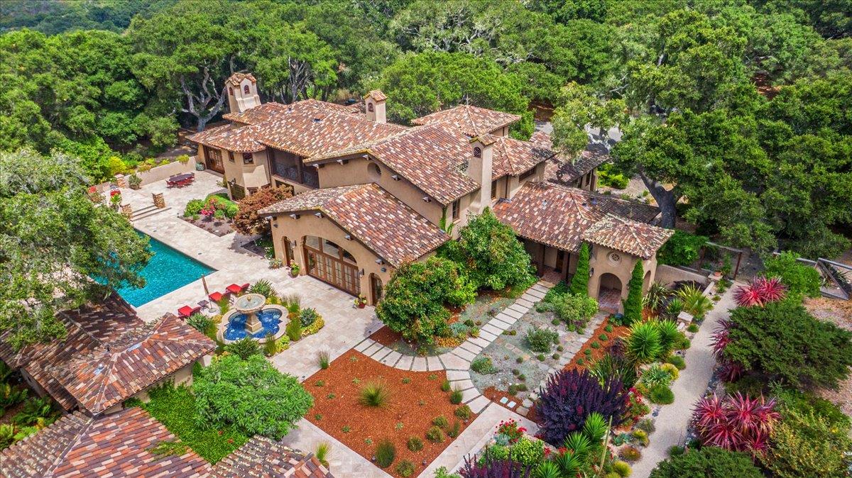 6 Wild Boar Run is nestled within the prestigious Santa Lucia Preserve & just a 3 minute drive from the main gate & close proximity to downtown Carmel. This Eric Miller designed Montecito style estate offers a meticulously crafted living space, seamlessly integrating an indoor & outdoor lifestyle. Completed in 2010, the residence has been lovingly maintained by the same family since its inception. Set on a private 15-acre lot, the main house features an expansive & functional floor plan, including 3 bedrooms, an office, a family room, great room, breakfast room, entertainers patio, multiple pantries, ample storage & wine cellar. With soaring high ceilings & numerous gathering spaces, this home is ideal for entertaining on all levels. The primary suite occupies the entire second floor, complete with a spacious balcony that offers stunning views of the pool, mountains & manicured grounds. The property also includes a detached 2 bedroom, 1 bath Casita, an additional pool bathroom, mature gardens & a generously sized jacuzzi. Plans are available for an additional car barn/garage, enhancing the property's potential. Located in a world-class setting within the Preserve, this extraordinary home offers a rare opportunity to create a new legacy for you as new owners