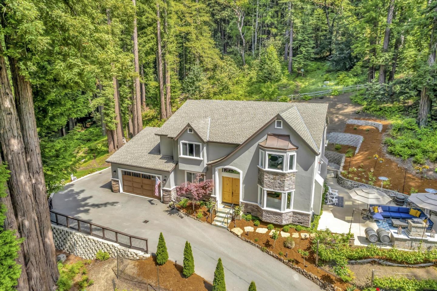 Welcome to your luxurious Scotts Valley retreat. The grand two-story entryway exudes elegance and sophistication. The chef's kitchen, complete with a spacious island and leathered granite countertops, is a culinary haven for cooking enthusiasts and a welcoming space to entertain guests. Indulge in relaxation in the inviting game room or open concept family room that is just off the kitchen. Upstairs, all four bedrooms await, with the highlight being the expansive primary suite boasting vaulted ceilings, a walk-in closet, and lavish bathroom featuring a soaking tub, large shower and double sinks. Just outside the front door you will find your private vineyard, with Pinot Noir vines, adding an exclusive touch to your estate. Golf enthusiasts can perfect their swing on the private golf hole, while the bocce court provides a venue for friendly competition. Unwind next to a wood burning fire on the patio overlooking the vineyard. Convenient freeway access ensures quick trips to both Santa Cruz and Silicon Valley, offering the perfect balance of seclusion and accessibility. Embrace the pinnacle of luxury living in this extraordinary retreat. Welcome home.