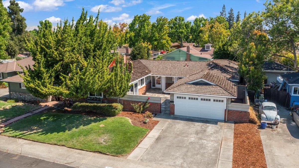 This is an excellent opportunity to move into this fantastic neighborhood at an affordable price! The home has original hardwood floors and slate tile in the kitchen and family room. The family room has vaulted ceilings, a sliding glass door opening onto the courtyard, a brick fireplace, and custom cabinetry and bookcases. The primary bedroom is oversized with a lot of natural light. A substantial outdoor workshop/storage building may be an ADU possibility. Walking distance to Santana Row and Westfield Valley Fair, which offers many upscale restaurants, theaters, and shops. Highways 880 and 280 are also easily accessible. Great floorplan!
