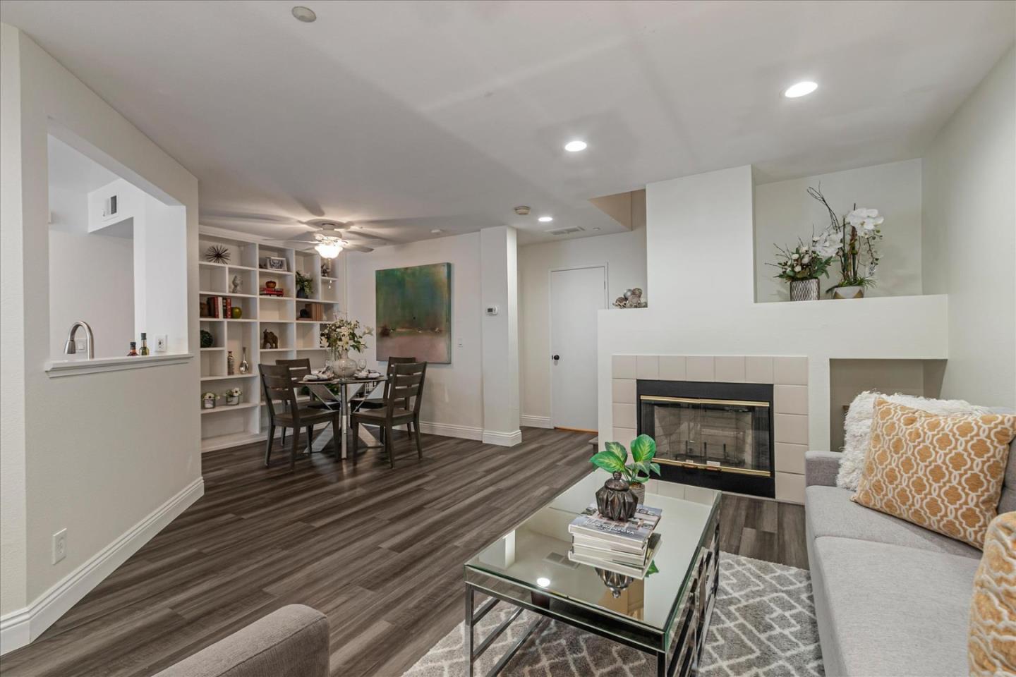 This charming 2-bedroom, 2.5-bath townhouse offers 1,293 square feet of comfortable living. Enter through a private front patio and fenced entrance into a welcoming living room with a gas fireplace, recessed lighting, and laminate flooring throughout the main areas. The bright kitchen features granite countertops, stainless steel appliances, and ample cabinetry. Sliding doors open to the patio, perfect for outdoor dining and gatherings. Upstairs, the large master suite includes high ceilings, two mirrored closets, and an en suite bathroom with a dual-sink vanity, bathtub, and shower. The additional bedroom upstairs provides flexibility and comfort, ideal for guests, a home office, or extra living space. Additional features include a dedicated laundry room and an attached one-car garage. Located in the California Grove community, this townhouse offers privacy with no neighbors above or below. Enjoy amenities like a pool, basketball court, and dog park. Conveniently close to coffee shops, restaurants, Target, Safeway, Kaiser Hospital, and highways 85, 87, and 101.