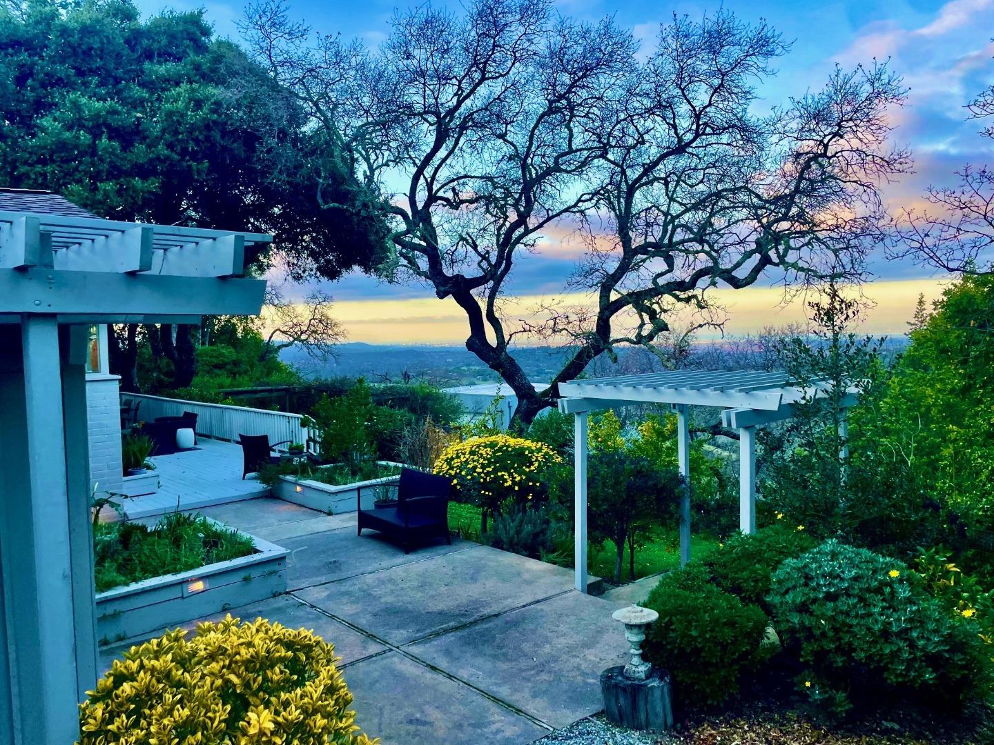 Serene bay views welcome you to this single-level, 3 bedroom, office/bonus room, 2 bath private retreat in Portola Valley's best kept secret, Los Trancos Woods. Set among mature oaks, enjoy sweeping bay views of three bridges, San Francisco, Stanford University, and the East Bay. The secluded property is on a cul-de-sac just steps across the road from a small lake and acres of open space with walking trails. Live in a private world apart, yet minutes from Stanford, 280, Menlo Park, Palo Alto and all Silicon Valley has to offer. The open floor plan with smaller bedrooms was modeled after a Usonian design of Frank Lloyd Wright. The remodeled home now includes an updated kitchen with marble counters, a larger master bedroom / bathroom and another large room that can function as a dining room / living room next to a tranquil Zen garden outside. Vaulted ceilings, floor-to-ceiling windows, and multiple skylights capture abundant natural light. In the master bath, relax in the jetted tub while gazing at heritage oaks. Custom features integrate the stunning views into the living spaces. The expansive deck, spanning the length of the house, is ideal for entertaining or viewing nighttime city lights around the Bay.