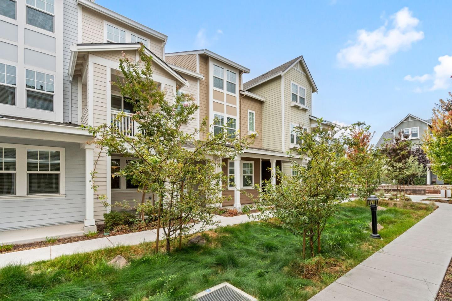 Welcome to this 6-year-new townhome in the best location of the community. Open floor plan in the living space with high ceiling. Two balconies next to both kitchen and living room. Wide space for dining table placement. Cozy living room has a wall for TV and sliding door for balcony access with tree view outside. One bedroom in lower level for flexible use. Two en-suite upstairs with laundry. Luxurious primary suite featuring double-sink vanity, walk-in closet, and separate shower. Hardwood floor and 9 ceiling throughout. Side-by-side 2-car attached garage. Gorgeous outdoor space with green belt in front of the house. Right next to bocce ball court and chess board. Steps away from Pyramid Park and basketball court. Walk to lots of tech companies, including Waymo, LinkedIn, Google. Close to Mountain View downtown. Extremely convenient location with quick access to all major highways and expressway. Top schools: Jose Antonio Vargas Elementary, Crittenden Middle and Mountain View High.