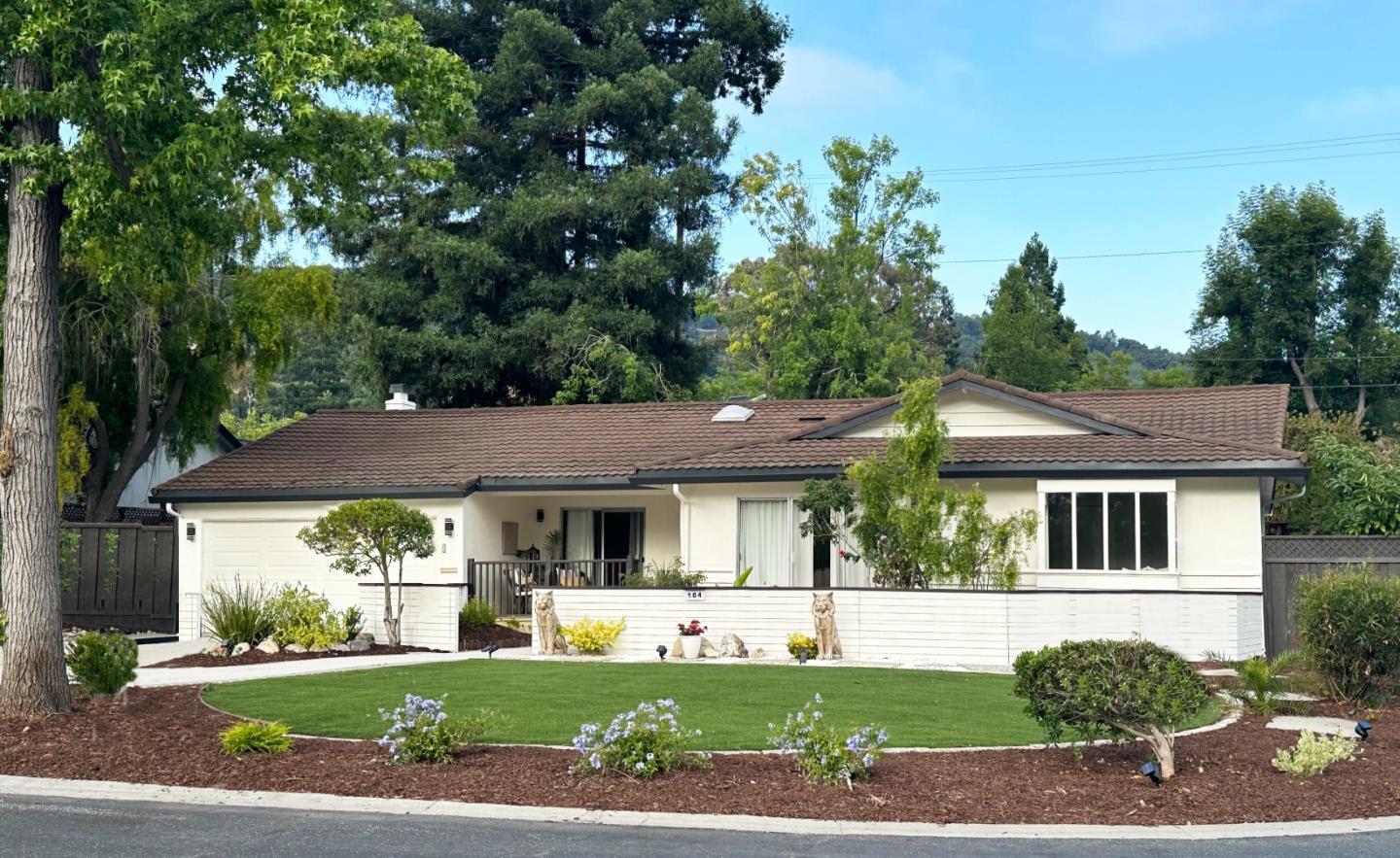 As one of Silicon Valley's most beautiful hillside neighborhoods, Belwood offers a wonderful community experience with rolling hills, walking trails to City views, and a Community pool area. 184 Belvue features a corner lot that is arguably one of the best lots in the Community. Move right in to this fully updated beautiful home. Relax and unwind in the resort-like rear yard with gorgeous redwood trees, a variety of natural living spaces, large decking areas, fruit trees and a garden path leading to mini vineyard. Inside you'll find a wonderful open family floor plan with lots of natural light and a large living room looking out to a quaint front patio. Formal dining room with large farmhouse doors. A large, bright kitchen with skylights, stainless steel appliances, quartz counter tops, and island bar which looks onto the family room featuring high ceilings, a gas fireplace and gorgeous backyard access and views. Large Main Suite with newly remodeled bath. Tesla battery power ready. All new air ducts. Newly painted inside and out. Enjoy the lovely Belgatos park only a short walk away. Youll be close to downtown Los Gatos, excellent neighborhood schools, and a perfect location to call home.