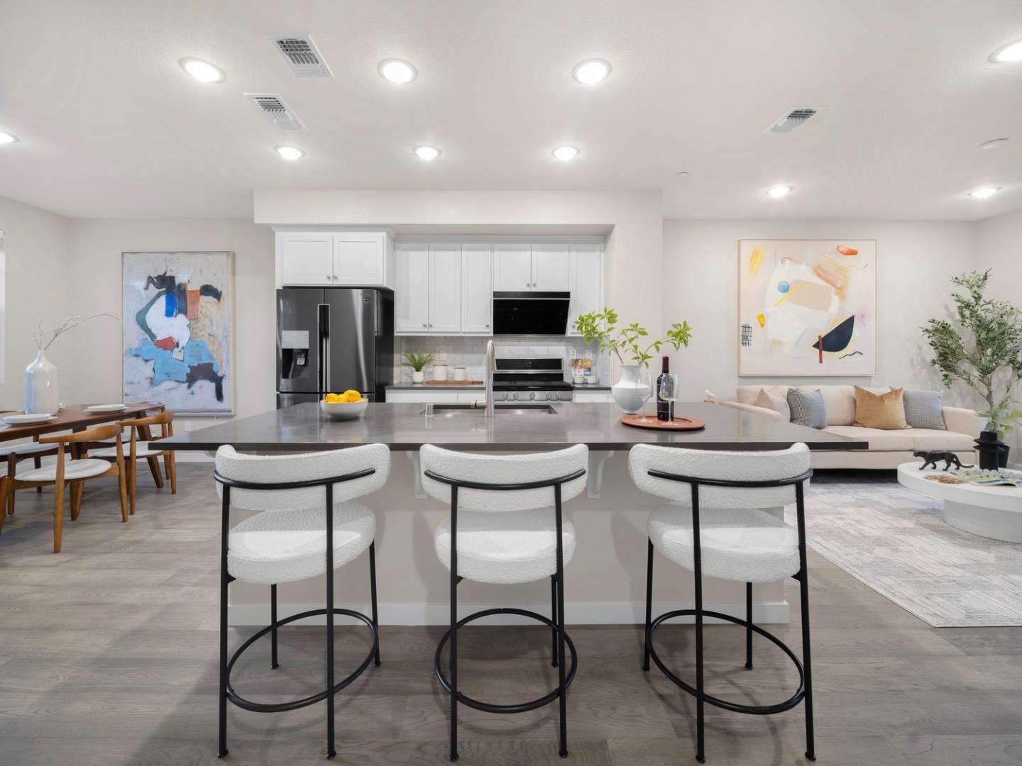 Welcome to this 5-year-new, move-in ready 3-bedroom, 3.5-bathroom townhome in the sought-after Whisman Station neighborhood! Discover the rarity of the BEST home layout: 1st floor complete en-suite for privacy, ideal for a guest bedroom or home office. 3rd floor offers two additional en-suites, with a master suite boasting double-sink vanity and designer walk-in closet. Enjoy abundant natural light flooding the main floor, melding a modern kitchen with a welcoming living room. Features include a central island, premium stainless steel appliances, and gas stove. Central HVAC with dual-zone control ensures year-round comfort. Revel in newly installed SPC flooring and recessed lighting throughout. Easy parking with 2-car garage and ample community space. Just minutes away, discover Pyramid Park with lush lawns, playgrounds, basketball court, dog parks, BBQ area, and more - an ideal setting for entertaining! Proximity to grocery stores, restaurants, 99 Ranch, and Costco. Near VTA Light Rail and major highways 237/85/101. Situated near leading high-tech firms: walking distance to LinkedIn, Waymo, Synopsis, Samsung, and 10-minute drive to Google HQ, Meta/Amazon/Microsoft/Apple Sunnyvale Campus. Top notched schools. Don't miss out on owning your dream home in this coveted location
