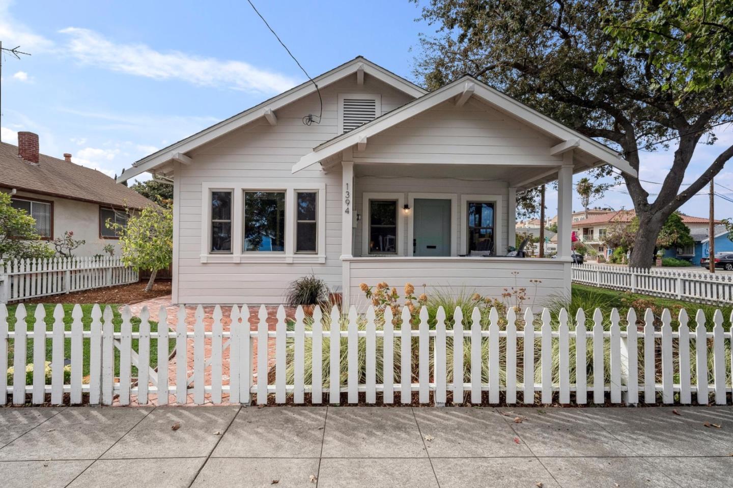 Stunning historic home located in Santa Clara's coveted Old Quad neighborhood. Aesthetic beauty and functional luxury nestled on a beautiful tree-lined street and a short stroll to the local farmer's market, parks, schools, shopping, and dining. A historical beauty with charm and character, preserved to the highest standard. 3 huge bedrooms, 2 updated vintage-style bathrooms w/luxurious finishes - clawfoot tubs, lux fixtures, mosaic tile and wainscoting. Grand living room, separate dining room, spacious kitchen w/SS appliances, Bosch DW, GE gas stove, quartz counters, pantry. Full basement w/tons of storage. Tankless water heater, forced air heat, A/C, energy-efficient windows, GE washer & dryer, Nest thermostat, Ring camera, and Tesla wall charger. Architectural details - wide molding, built-in cabinetry, stained glass, coffered ceilings, antique brass hardware. Covered front porch - enjoy morning coffee, chat with lovely passers-by or unwind in the evening breeze. A lush, fenced backyard garden, filled with succulents and flowering plants. Located in the quiet, community-centric, convenient SC Old Quad with easy access to major tech hubs and transportation. You'll fall in love w/the home's charm and sophisticated style, perfect for today's discerning homeowner.