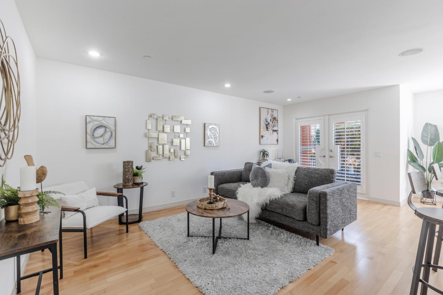 Nestled in the heart of Santa Clara, this quiet & serene ground floor 2 bedroom, 2 bathroom end unit condo is your home oasis. Tucked within a gated community, it features open-concept living with a seamless flow of living spaces. A spacious living room is bathed in natural light from large French doors that open onto a lovely patio. A contemporary kitchen featuring SS appliances (including a wine fridge), sleek granite countertops, and a breakfast bar with pendant lighting for casual dining. A separate dining area with a large window offers a beautiful community view. The primary bedroom is spacious with a closet, an ensuite bath featuring slate tile, and an oversized deep tub with a separate shower. The 2nd bedroom is ideal and perfect for a kids', guest, or roomy office. Inside laundry, built-in surround sound, recessed lighting, and plantation shutters are added touches that add a resort-like comfort to your home. Amenities include the sparkling pool, hot tub, BBQ and entertainment area, fitness center & spacious clubhouse. HOA dues include water, garbage, and sewer. The home includes a detached 2-car garage (shared with unit 209) and one assigned parking spot. There is easy access to shops, restaurants, entertainment, SCU, and SJ Int'l Airport. Don't miss your chance.