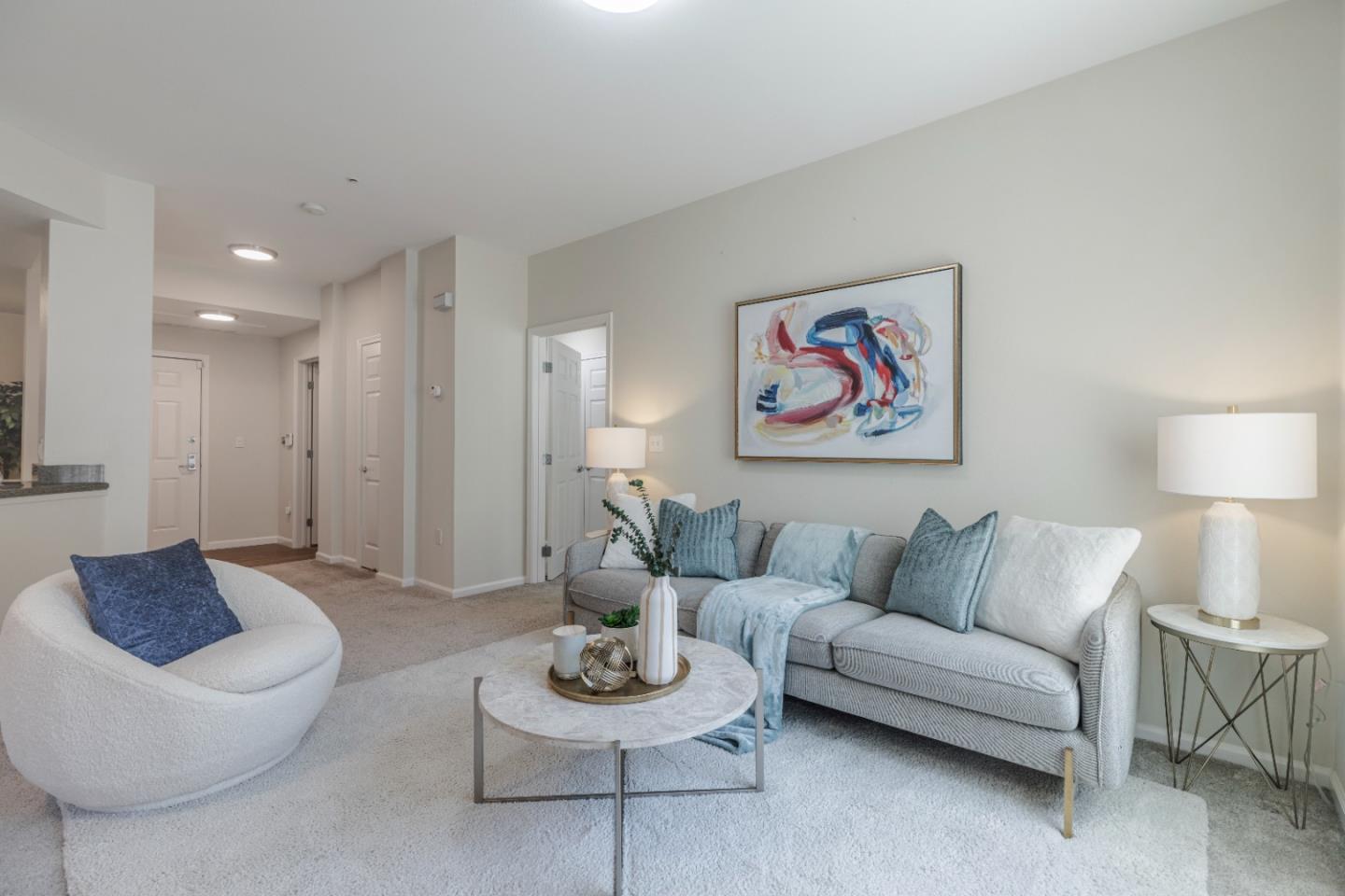 This inviting ready move in condo nestled in the highly desirable secure Sonora Community offers 1 bedroom with large walk in closet and additional den space. Upon entry, you'll find a kitchen and living room combo. The kitchen is equipped with granite countertops, appliances, and cabinetry. The spacious living room opens to a private balcony through sliding doors. Adjacent to the kitchen is a bonus room/den, perfect for an office or small guest room. The unit also features in-unit laundry with a washer and dryer for added convenience. The bedroom includes a walk-in closet with cabinetry. The bathroom is fitted with granite countertops and a shower over tub. The community offers a pool, jacuzzi, gym, and grill. The condo includes underground parking. Rosemary Gardens Park is across the street. It is close to downtown San Jose, providing easy access to shops, farmers' markets, and restaurants. It also has quick access to highways 87, 101, and 880. Don't miss this great opportunity!