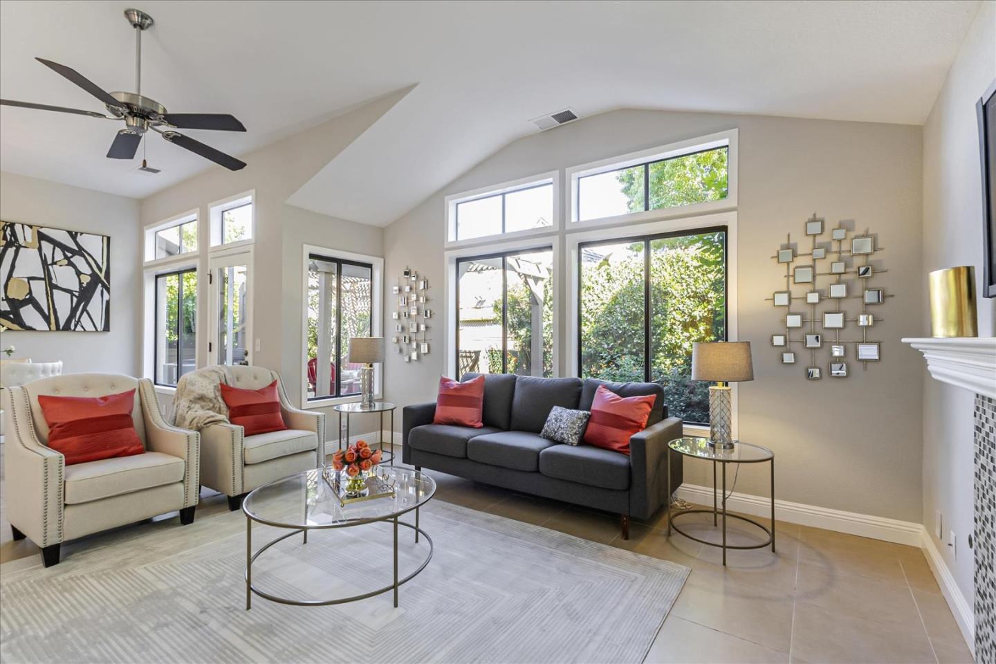 Welcome to your East facing, bright & airy single level home in the 55+The Villages Golf & Country Club! High ceilings throughout this home, large windows, open floor plan, totally private large outdoor backyard patio, master bedroom morning coffee patio + amazing modern huge kitchen makes this home a 10+!! The modern kitchen features new cabinets, stainless steel appliances, gas stove, restaurant style hood, pantry pull out shelving with extra storage, spice rack, soft closing drawers, books/ dishes/art display, kitchen/ office desk & storage. The stone countertop & a backsplash has ton of prep, baking & serving space! Beautiful eat in kitchen breakfast nook. Recess lighting, wood shutters throughout. Primary bathroom has a sit down jacuzzi tub, a separate shower. Walk in closet, linen closet. Reading window in the secondary bedroom. The Villages offers residents unparallell RESORT lifestyle you will not find anywhere else in the Bay Area! It's all here, inside the secured gate, no need to travel... just walk to meet friends at the bistro, bar, restaurant, be a part of any of the 40 clubs, play golf, hike, swim, dance, yoga, gym, garden, park RV, golf cart. Time to learn to relax and enjoy! If you are still working or retired - enjoy amenities & new friends! Welcome home!