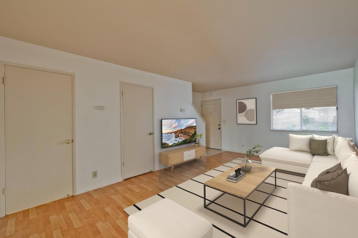 Best VALUE in town. Move-in ready, turn this place into your new cozy spot! Enjoy more than 1,000 square feet of sun-filled living space. Large living room with laminate floors and views of the front common area. The generous sized kitchen is well-designed with private patio, large window and all the appliances. Two master suites, each with updated full bathroom and private balcony. Washer / Dryer are included. 1 car detached garage. Low month HOA fee. Easy access to shopping, restaurants, parks, San Jose State University, Caltrain station, freeways (280, 87, 880 and 17), and tech giants like Google, Apple, and Nvidia. Don't miss out this incredible opportunity to own a piece of the Silicon Valley dream! Great opportunity for first time home buyers / investors.